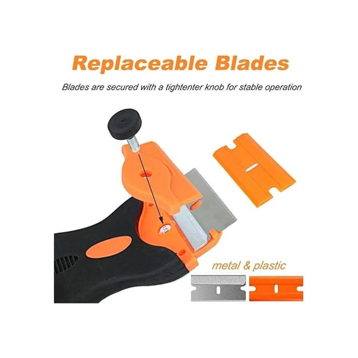 Fácil de transportar y multiusos: lo suficientemente pequeño como para llevar en el bolsillo o en el kit de herramientas, herramienta de extracción para juntas, vinilo, calcomanías, señal de calcomanía, residuos de pegamento de película tintada, pintura, pegamento de coche, sellador, silicona, masilla o adhesivos de cocina, vidrio, azulejos, paredes, suelos, espejo, metal, etc.