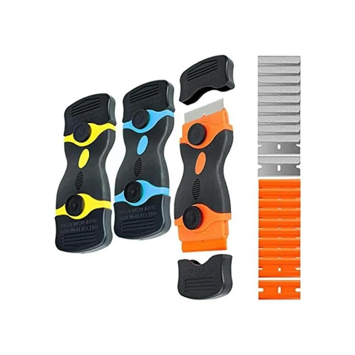 Paquetes más favorables Juego de 23 piezas: incluye 3 rasquetas de doble filo 10 cuchillas de plástico de doble filo 10 cuchillas de metal.