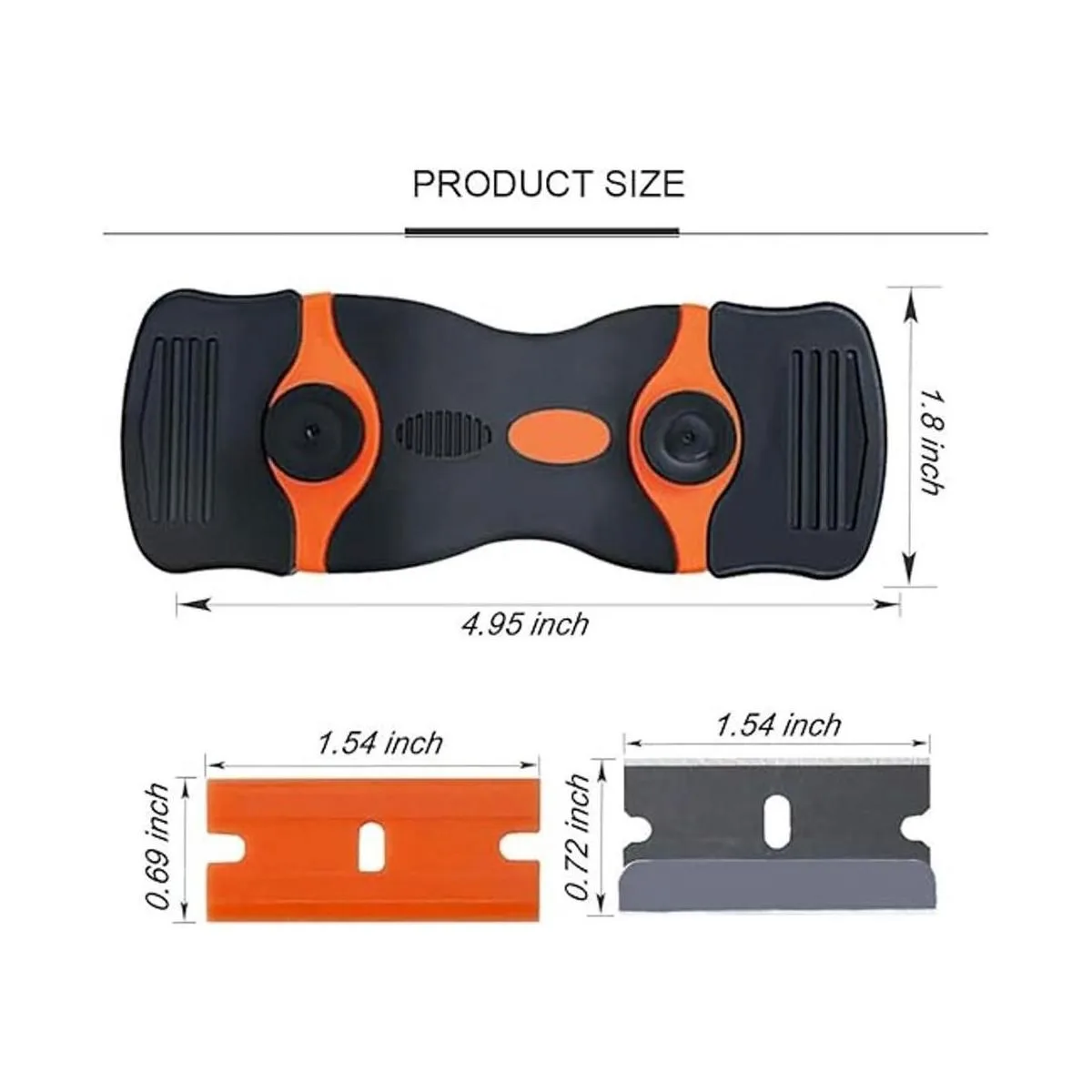 Doble filo: rasqueta de doble filo, cuchillas de alta resistencia y cuchillas de plástico funcionan respectivamente para diferentes propósitos, un rascador puede manejar una variedad de tareas. Se puede utilizar en superficies duras o blandas sin rayar, ahorrando espacio y tiempo, y aportando más comodidad.