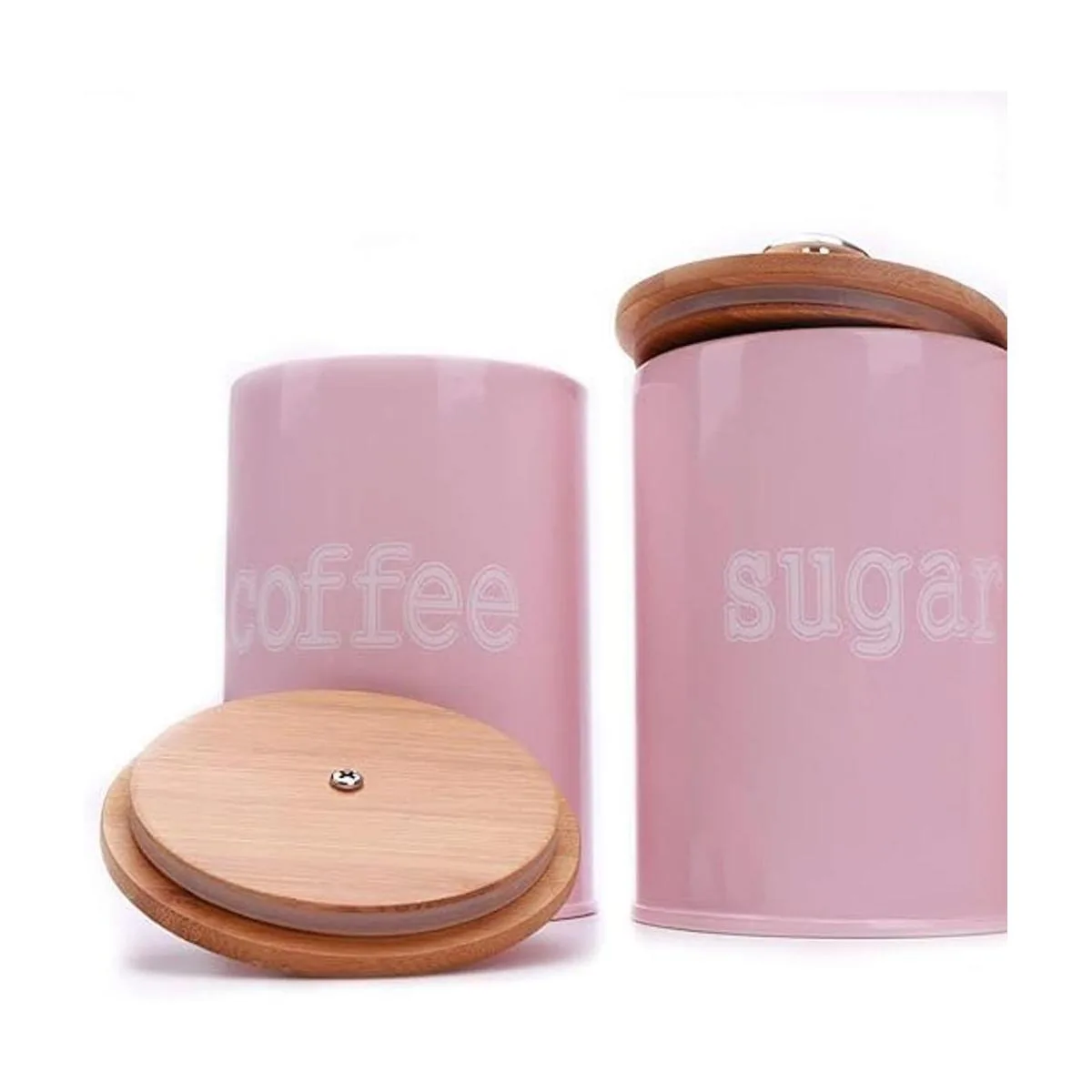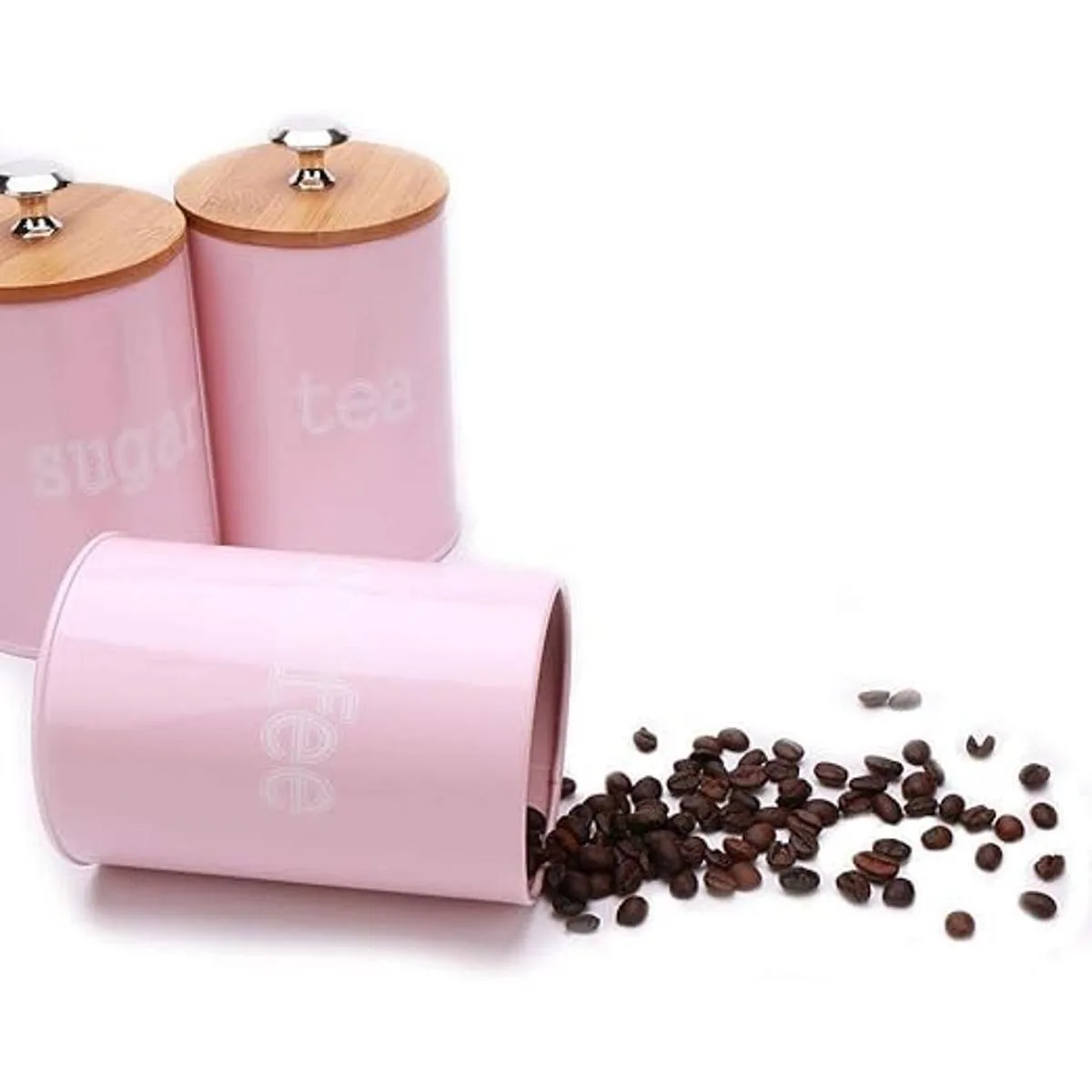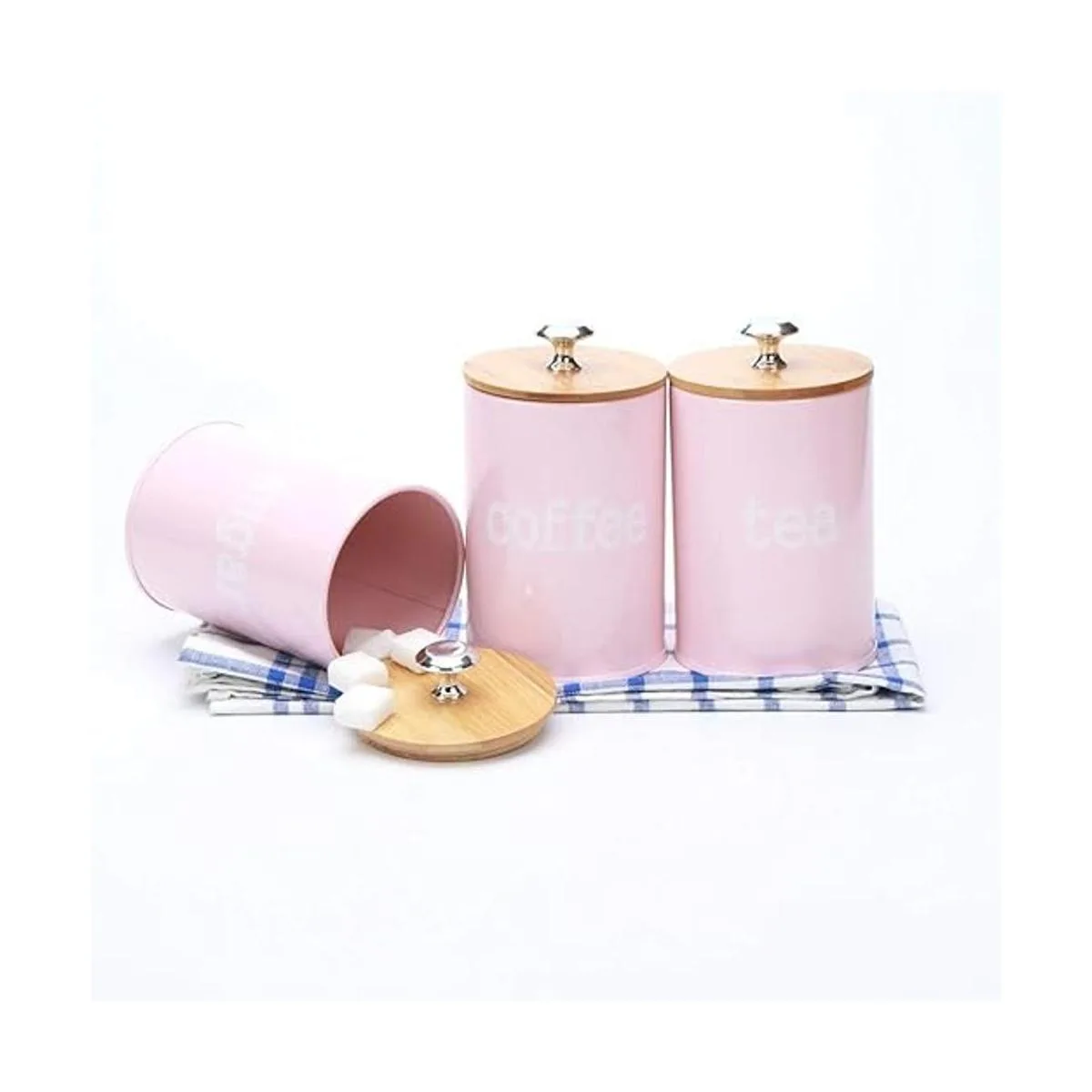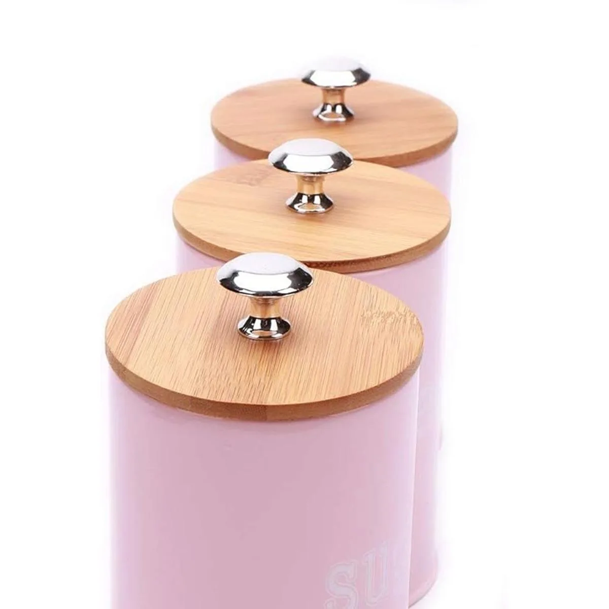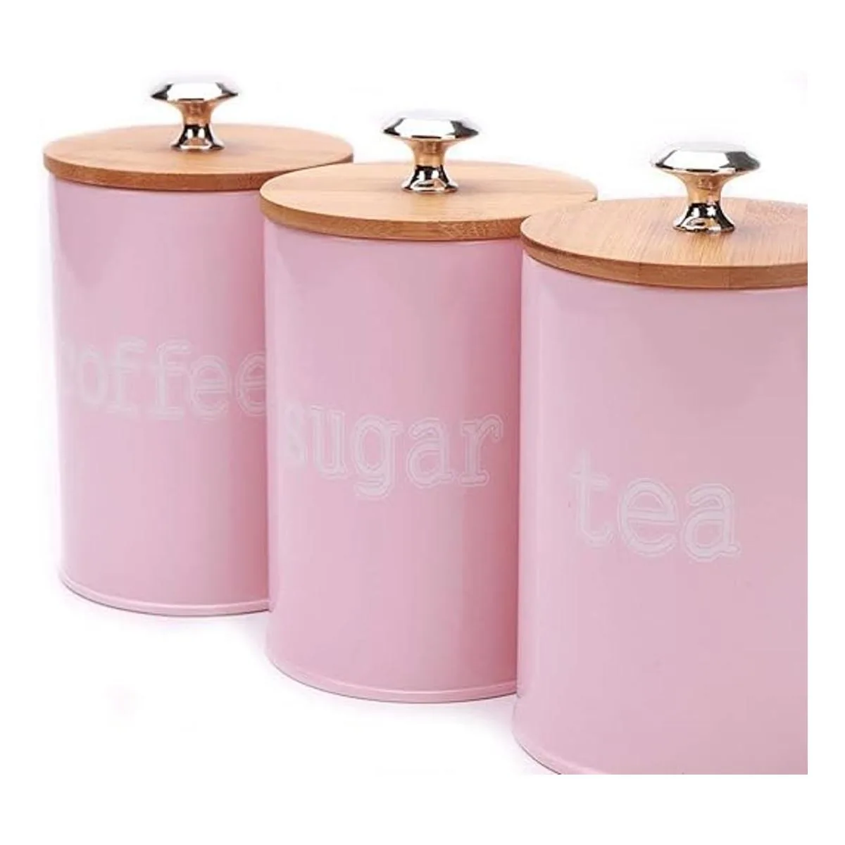 Juego de 3 latas de metal para almacenar alimentos, con tapas de bambú, X022S, Fine, Rosado