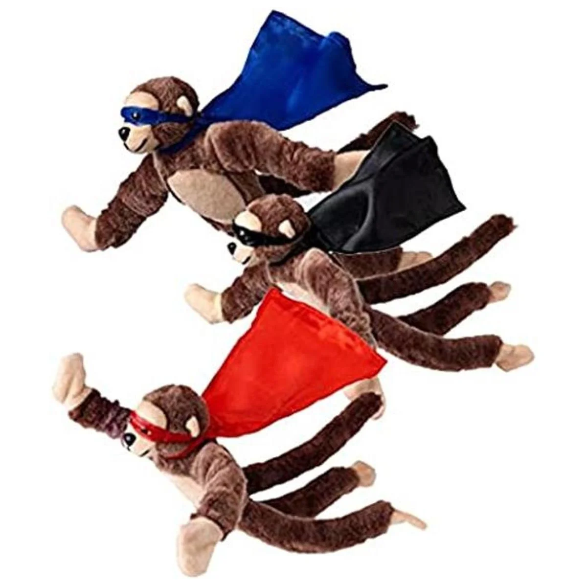 Monos voladores: el juego de tres monos voladores y chirriantes incluyen máscaras y capas los colores varían como tu superhéroe favorito