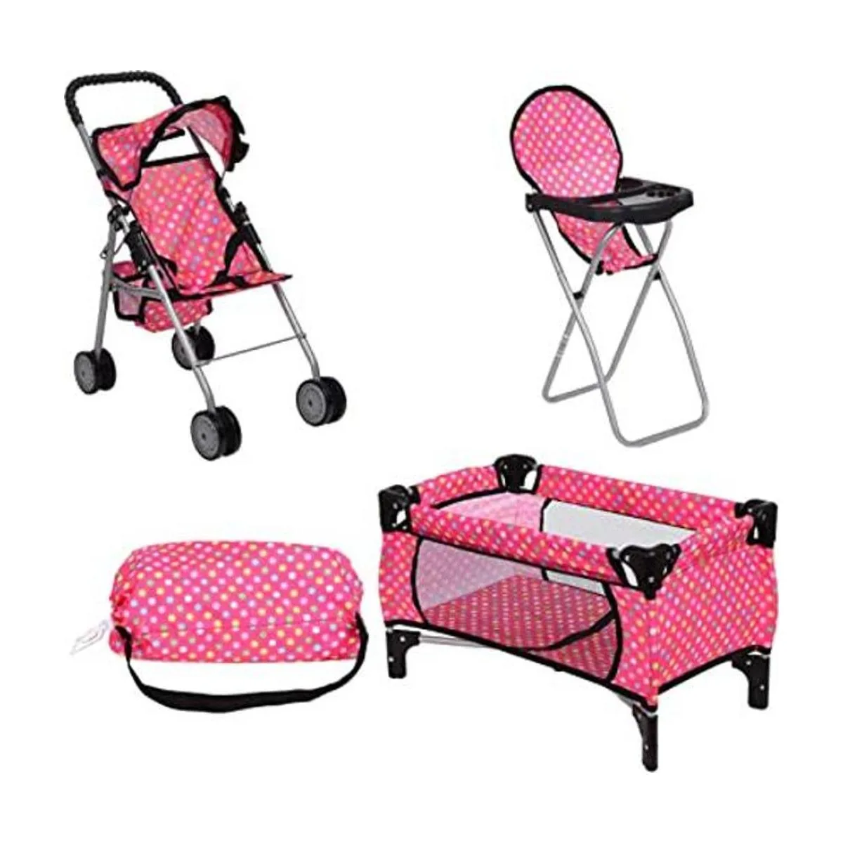 Juego de 3 piezas fash n kolor para muñecas. incluye 1. Parque infantil. 2. Sillita de muñeca 3. Silla alta de muñeca. 4. Asiento para bebé, adecuados para muñecas de hasta 45cm.