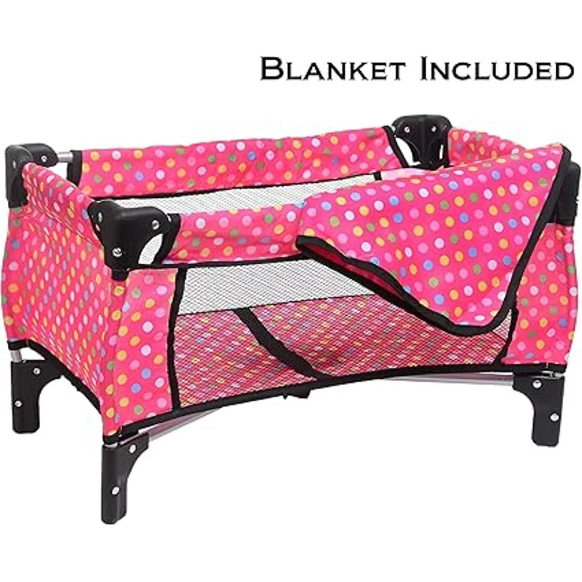 Gran tamaño y espacio de almacenamiento:Muñecas de hasta 18 pulgadas de altura pueden caber en el cómodo acolchado bandeja de juego.Incluye una cesta de almacenamiento en la parte inferior y la muñeca que puede contener otros juguetes, ropa de recambio y accesorios de la muñeca.