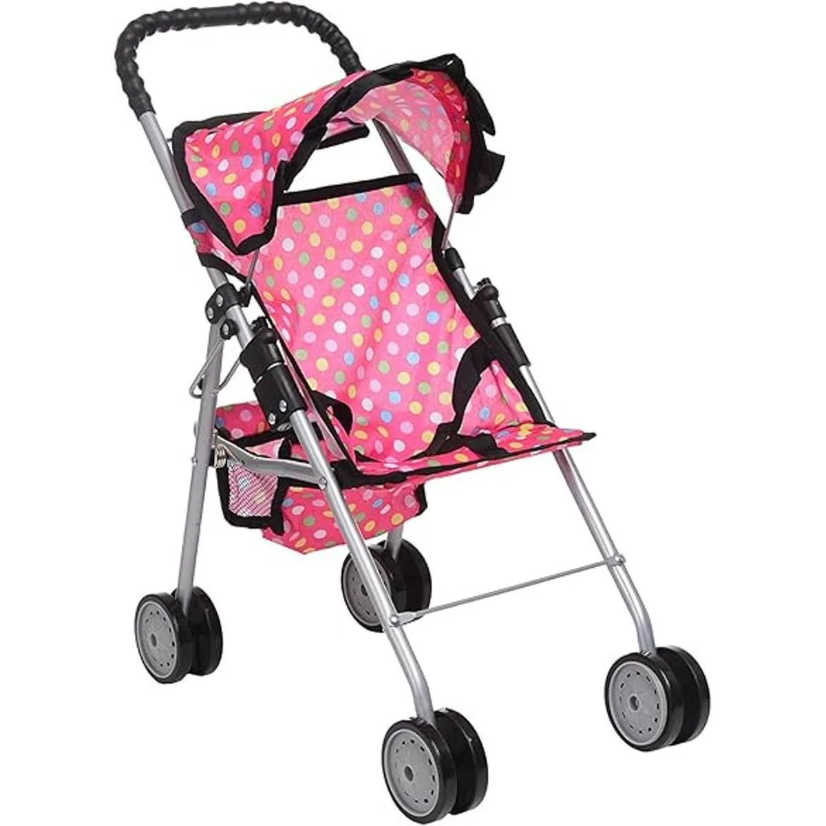Diseño llamativo:Este 3 en 1 Juego de muñecas de una silla de paseo cuenta con un tono muy responsable con el patrón de lunares multicolor sobre una base de color rosa, un regalo perfecto para tus hijos.