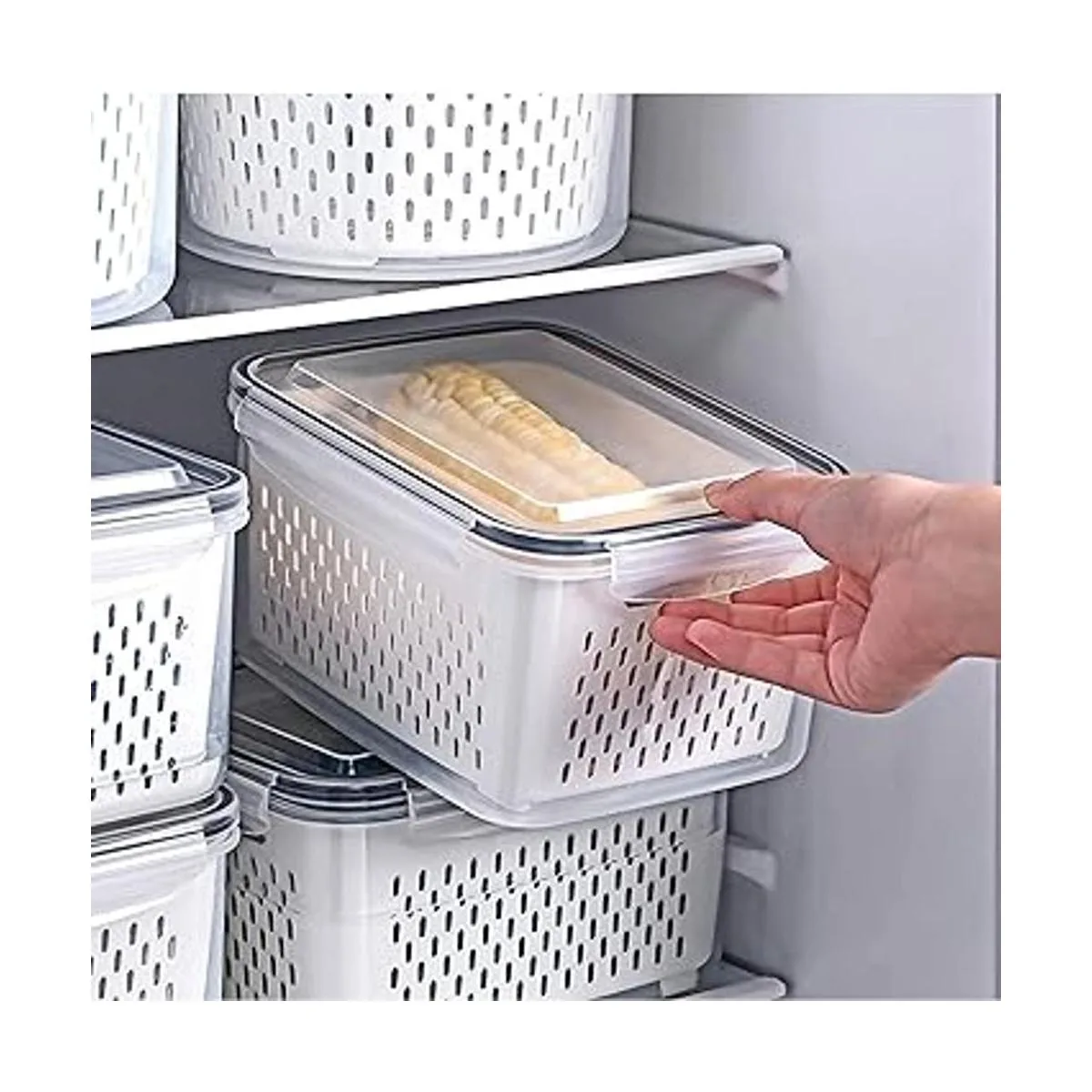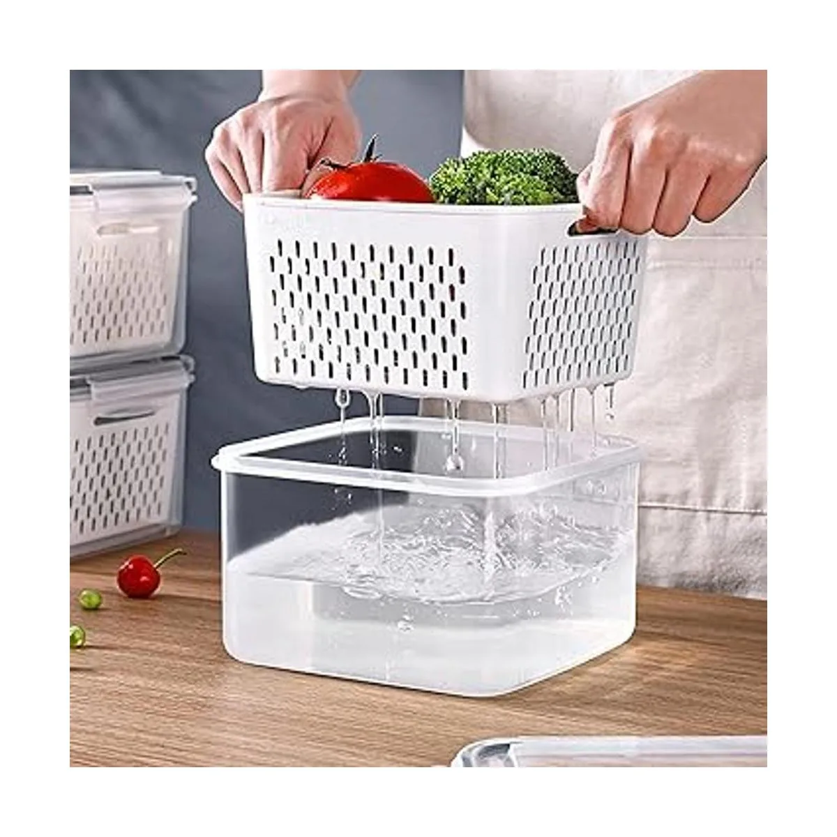Diseño multifuncional: el recipiente para nevera viene con una cesta filtrable. La cesta se puede utilizar como un colador para lavar tus frutas y verduras, o para colar el agua mientras cocinas alimentos como pasta o puré de patatas.