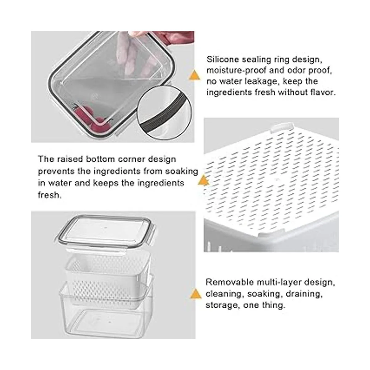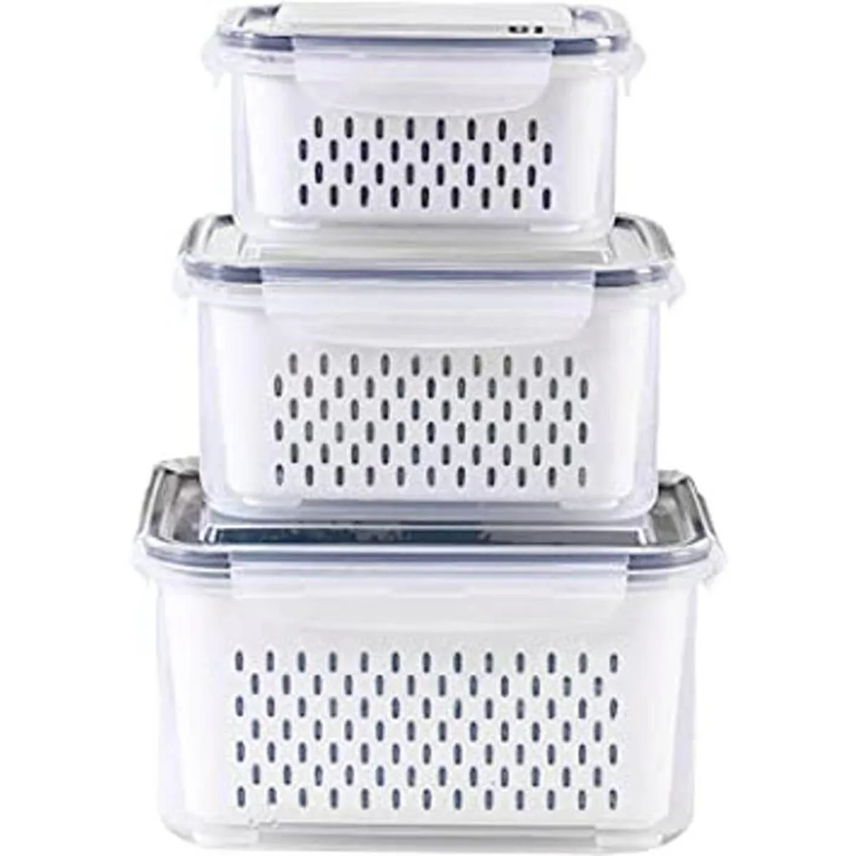 Juego de 3 recipientes de almacenamiento de alimentos para nevera con tapas con colador, organizador de almacenamiento de alimentos frescos de plástico sin BPA 3.15 pulgadas 1.7 pulgadas 0.8 pulgadas de largo