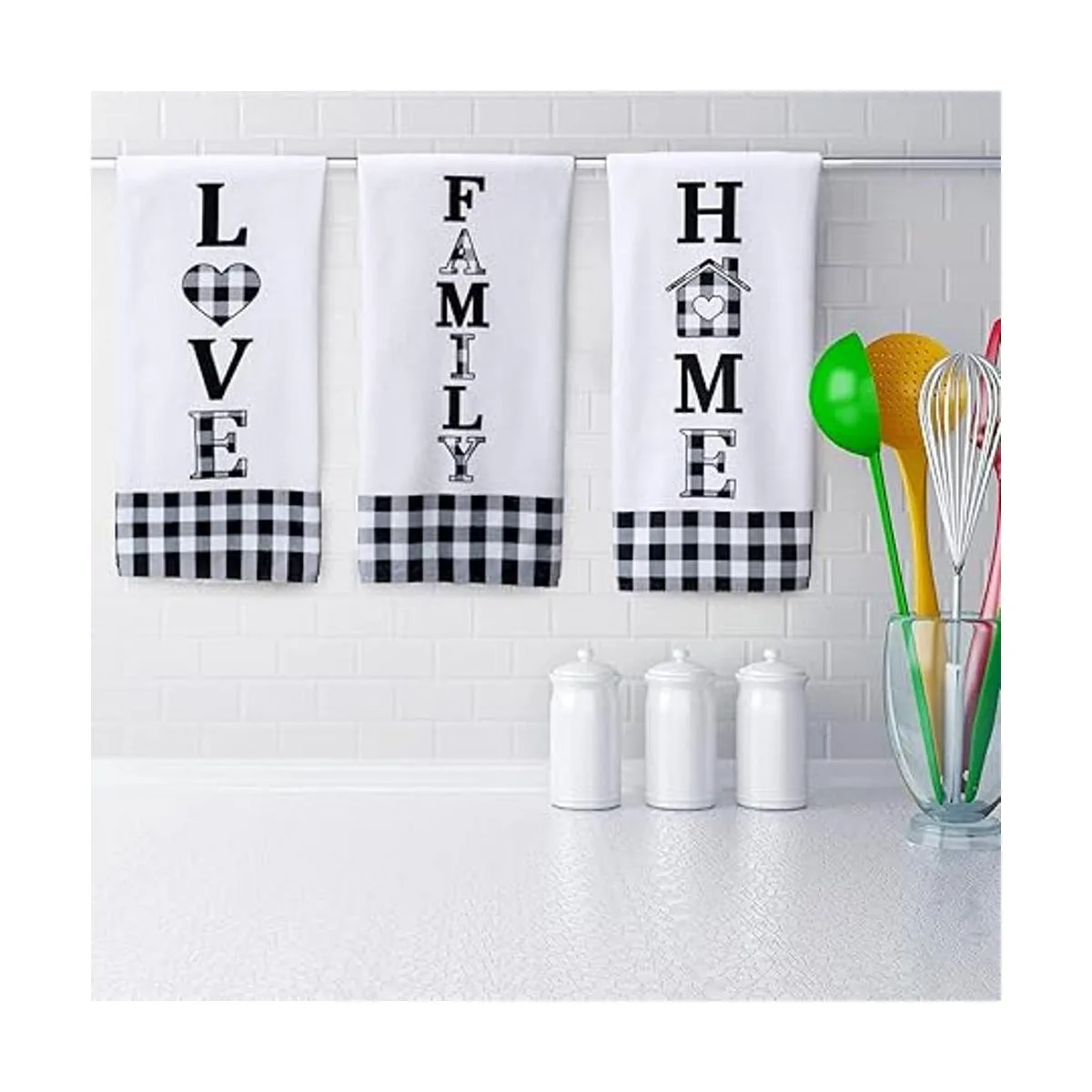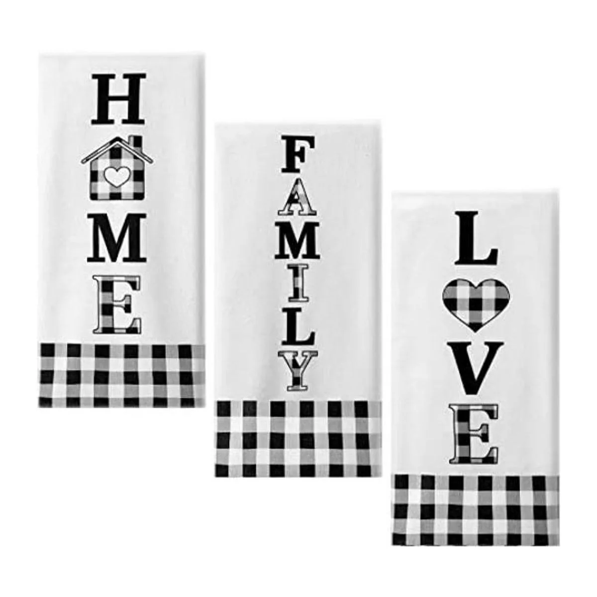 Juego de 3 toallas de cocina a cuadros de Buffalo Home Love Family de color blanco y negro, juego de toallas de cocina de campo de secado rápido, toallas de cocina decorativas para cocinar y hornear kite
