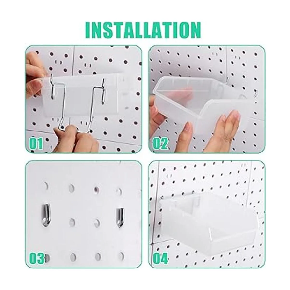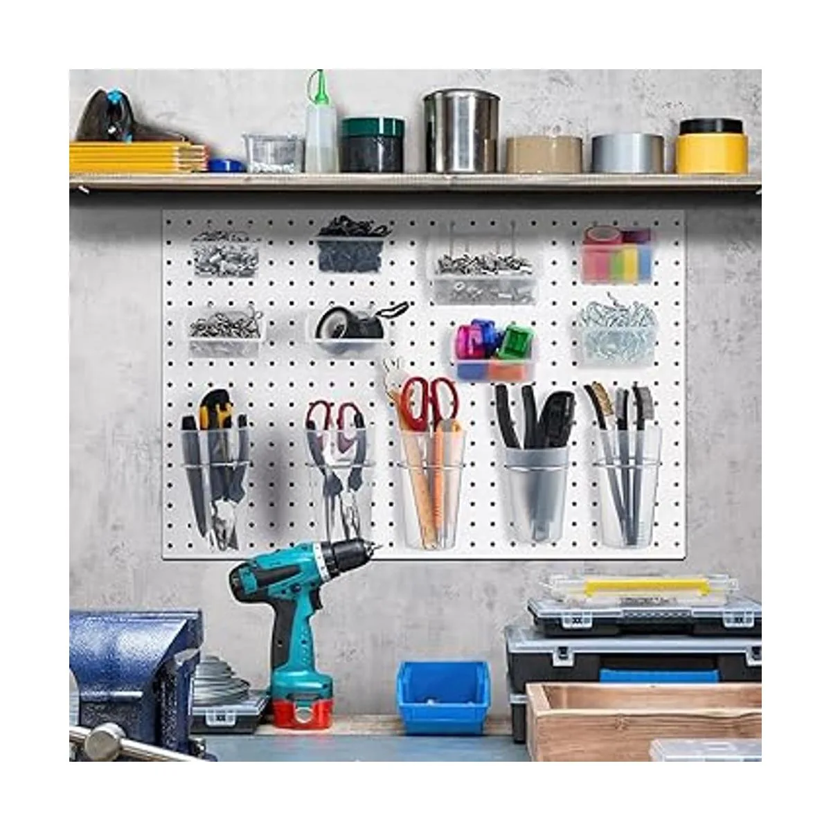 Material fiable: estos organizadores de herramientas para tablero de clavijas están hechos de plástico de calidad, resistente y no es fácil de romper, lo que te proporcionará una larga vida útil, y se puede utilizar con confianza; los ganchos y aros para tablero de clavijas están hechos de acero, que no se oxida fácilmente y es fiable de usar