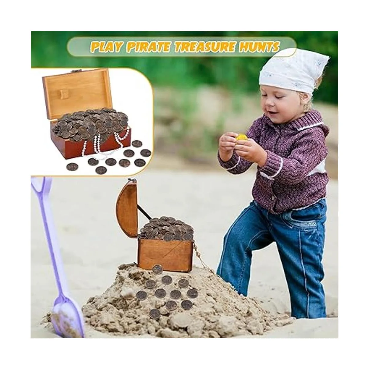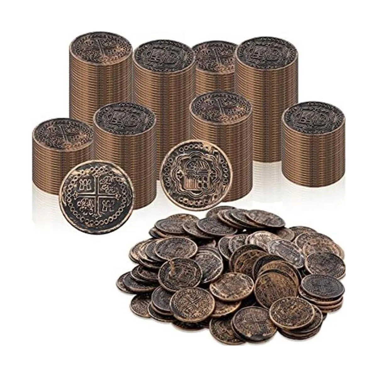 Juego de 300 monedas de plástico pirata, monedas de búsqueda del tesoro, recuerdos de fiesta, monedas falsas, juguetes de decoración de fiesta pirata, suministros de monedas para pirata, Halloween, cumpleaños, juego temático de aventura bronce