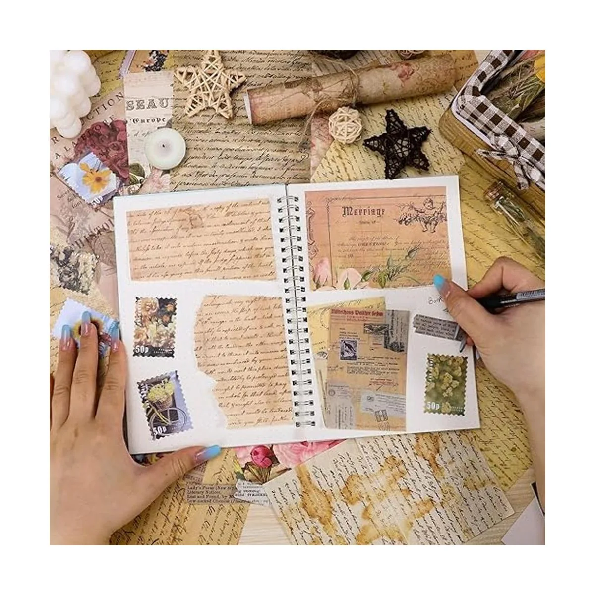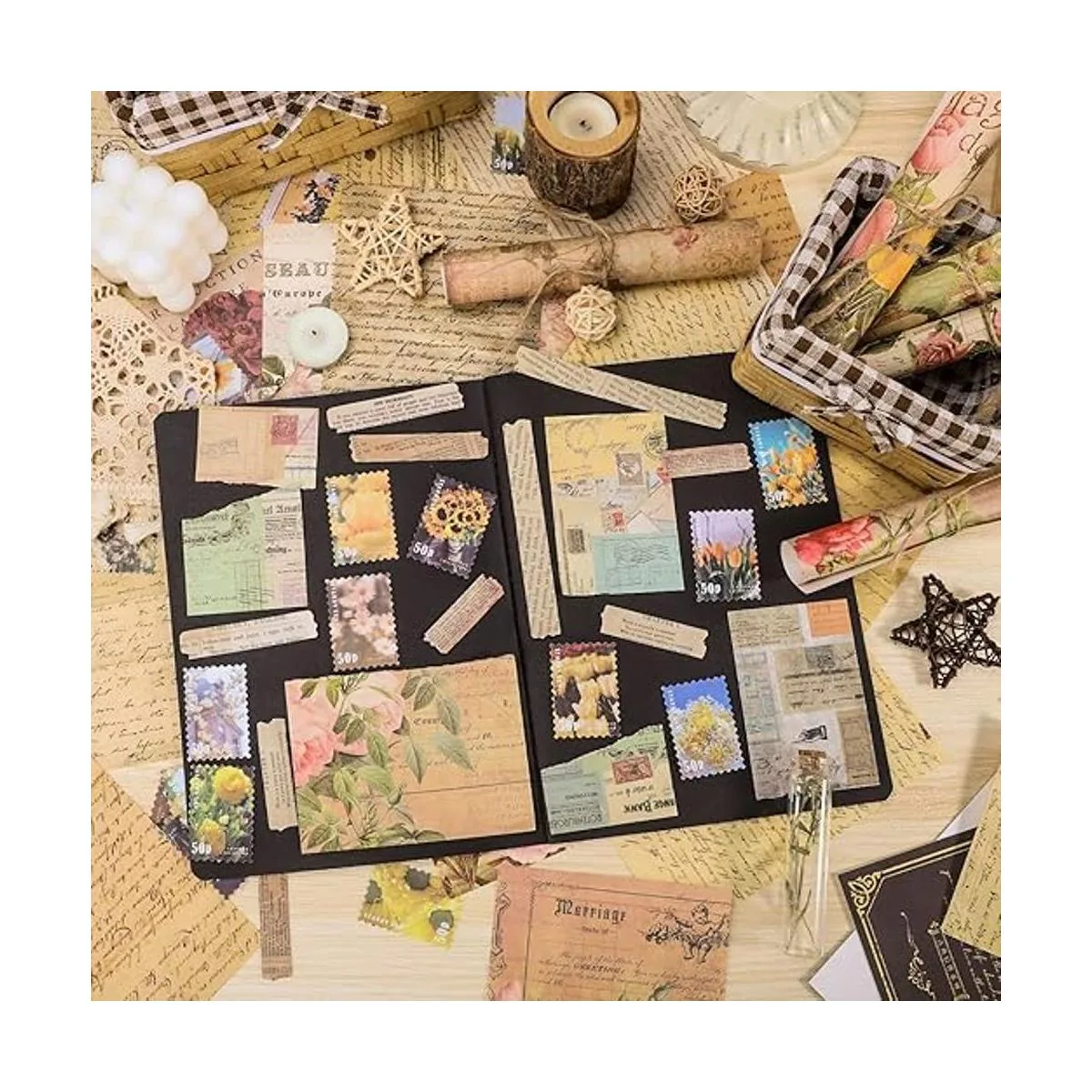 Suministros multiusos para álbumes de recortes Este kit de suministros de álbumes de recortes es perfecto para diarios de arte, collages, arte de medios mixtos, decoupage, álbumes de recortes, planificadores de decoración, diarios y diarios de viñetas, manualidades de papel, hacer cuadernos de aspecto antiguo, envoltura de regalos, tarjetas hechas a mano, cajas y paquetes, etiquetas de regalo, decoración del hogar, certificados envejecidos, menús de aspecto antiguo, mapas antiguos, diario basura