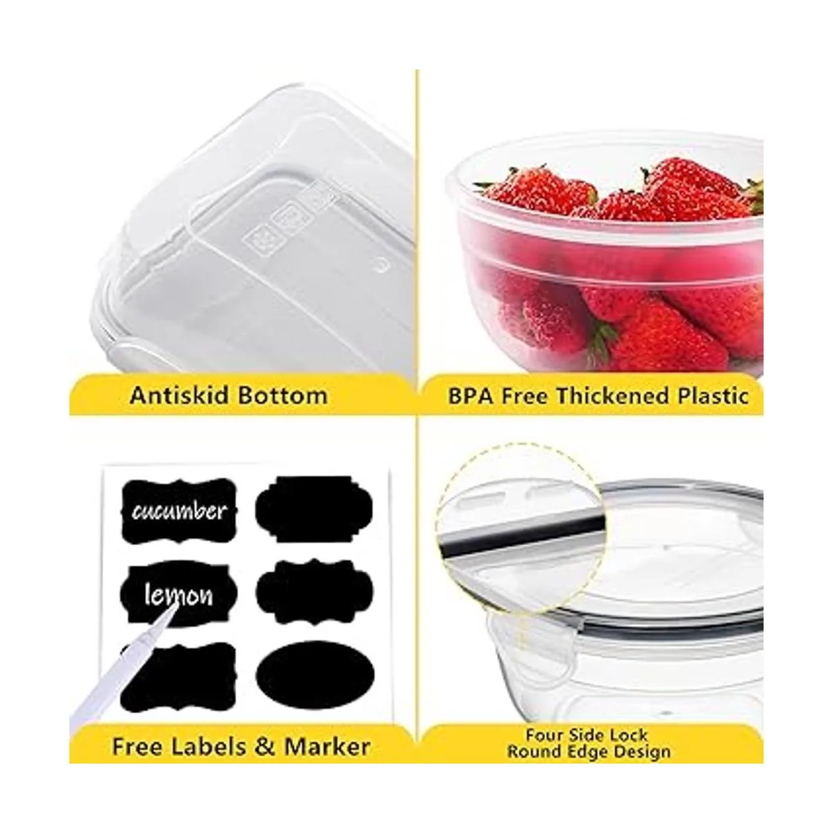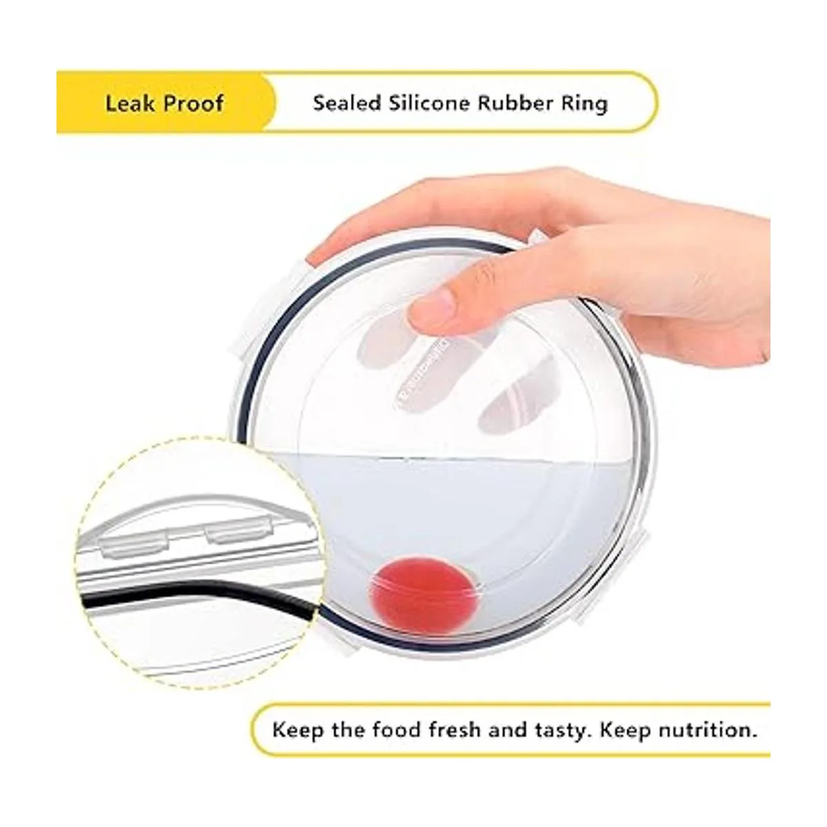 Excelente resistencia al aire: con anillo de silicona de grado alimenticio, este almacenamiento hermético de alimentos es totalmente a prueba de fugas. Mantiene la comida seca, fresca, nutrición y deliciosa durante más tiempo. La deliciosa sopa también se puede contener fácilmente. Guarda cada comida individualmente en un recipiente hermético, di adiós a los olores del refrigerador