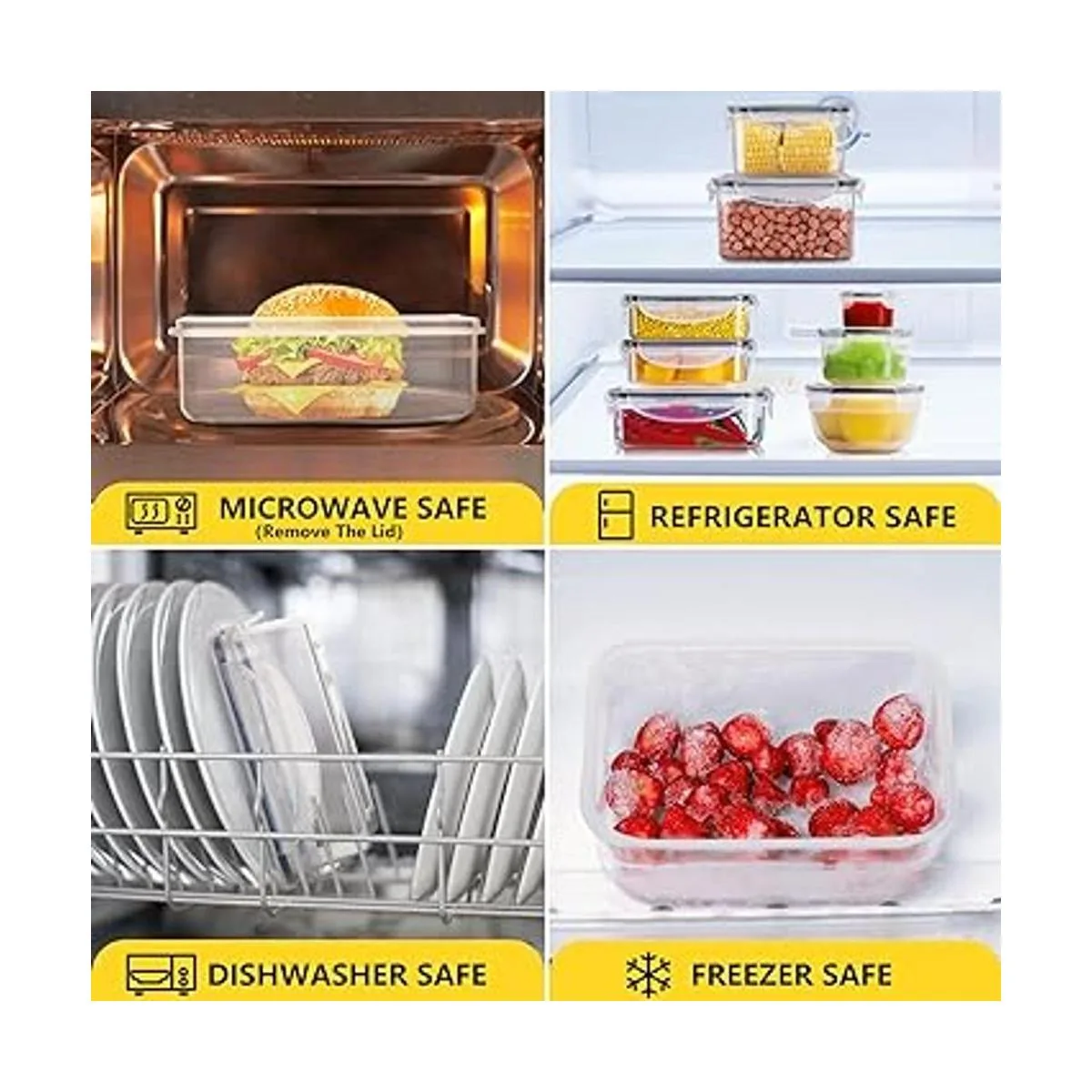 Sin BPA y apto para microondas y lavavajillas: utilizando materiales mejorados de grado alimenticio, nuestros recipientes de almacenamiento de alimentos son libres de BPA y totalmente seguros para tu salud. Y este juego de recipientes es apto para refrigerador, congelador, microondas y lavavajillas. Retira la tapa antes de ponerla en el microondas