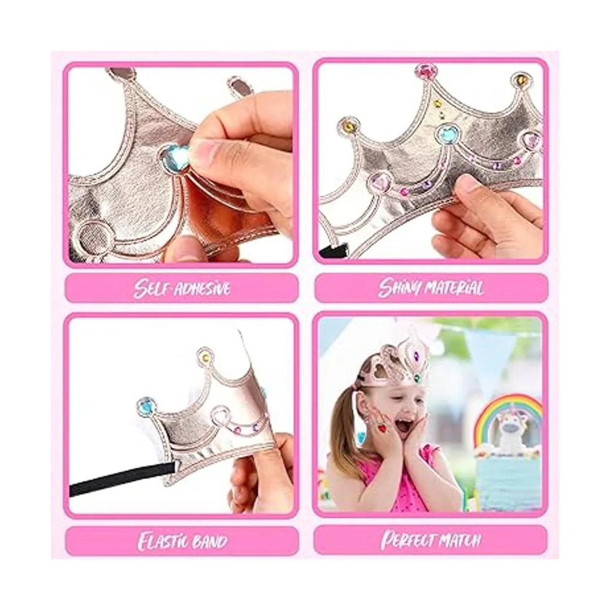 Haz tu propia corona: el kit de manualidades de corona es fácil de usar, el paquete está equipado con calcomanías de piedras preciosas, puedes utilizar tu imaginación y creatividad para diseñar múltiples estilos de corona; también puedes vestir la corona con tu hija, lo que mejorará la relación entre la tuya