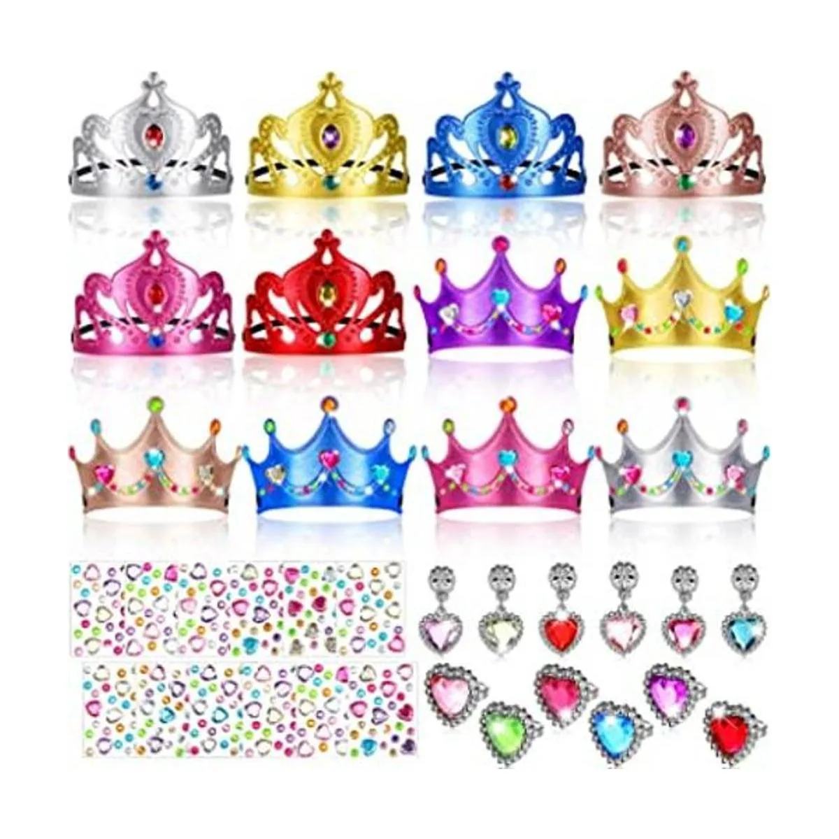 Juego de 36 piezas de tiaras y coronas de princesa de espuma, juguetes de joyería de princesa, calcomanía de diamante de cristal, corona de princesa, King, anillo de fiesta de niños, regalo de fiesta de cumpleaños para fiestas de niños