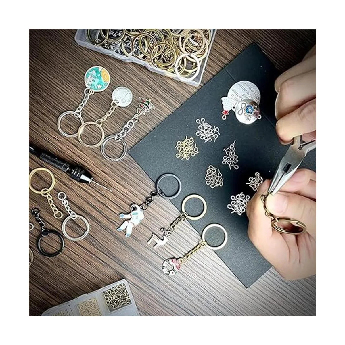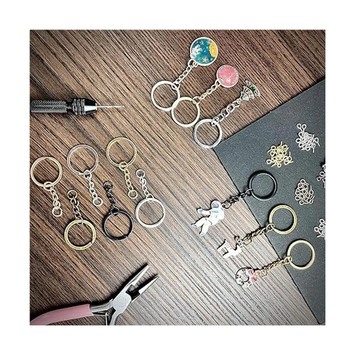 Ampliamente utilizado: este juego de llaveros con cadenas es adecuado para todo tipo de escenas hechas a mano, ya sea hecho de material de silicona, material de cerámica suave y otros materiales, puedes utilizar pequeños pines de tornillo para hacer estos productos hechos a mano en llaveros y otros accesorios.