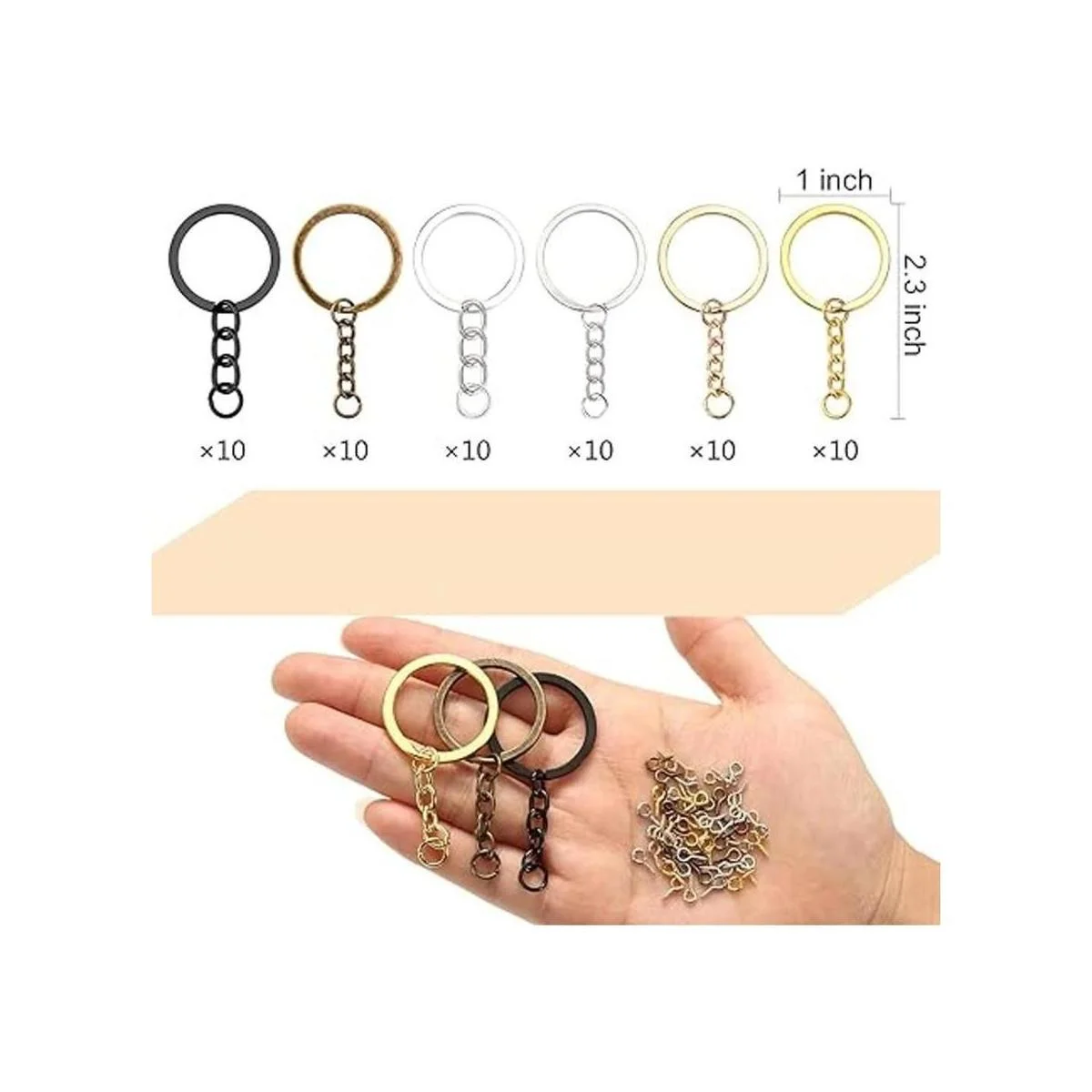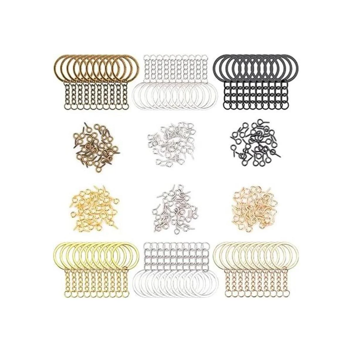 Potente kit para manualidades: incluye: 60 llaveros 0.984 in con cadenas y anillos divididos a juego, también combina con 300 pines pequeños en forma de ojo de tornillo 0.157 x 0.315 in, el juego de 360 llaveros de combinación rica para satisfacer tus necesidades hechas a mano