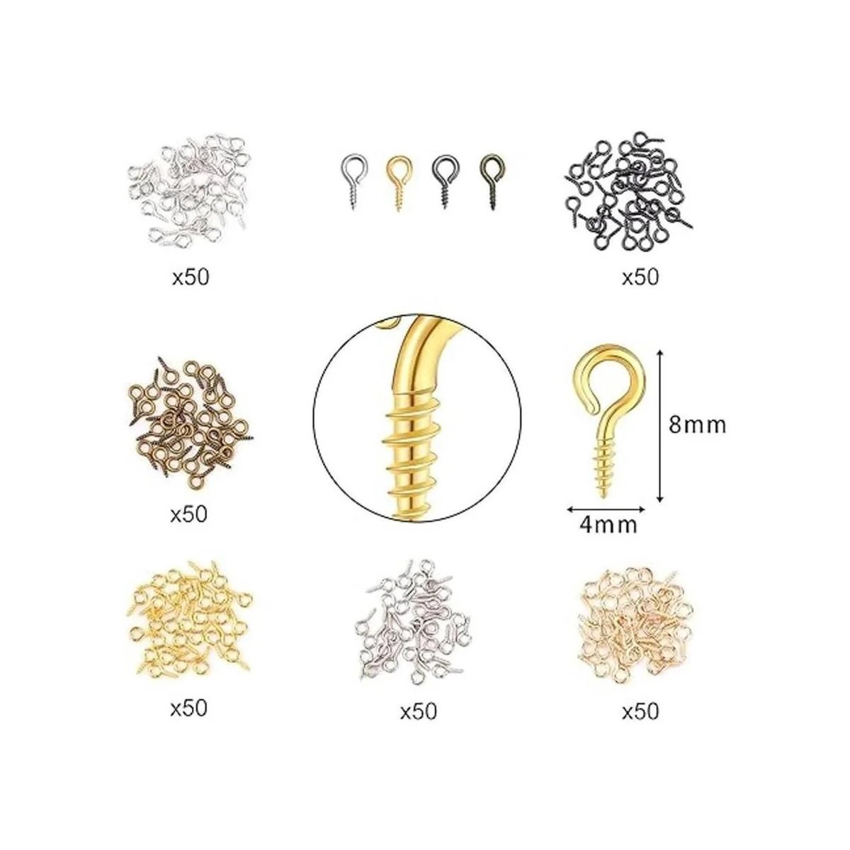 Fácil de usar: estos llaveros divididos con eslabones de cadena y anillos abiertos son fáciles de fijar accesorios, colgantes o etiquetas para hacer atractivos llaveros y llaveros, los pequeños pines en forma de ojo de tornillo pueden satisfacer tus necesidades para hacer joyas hechas a mano.
