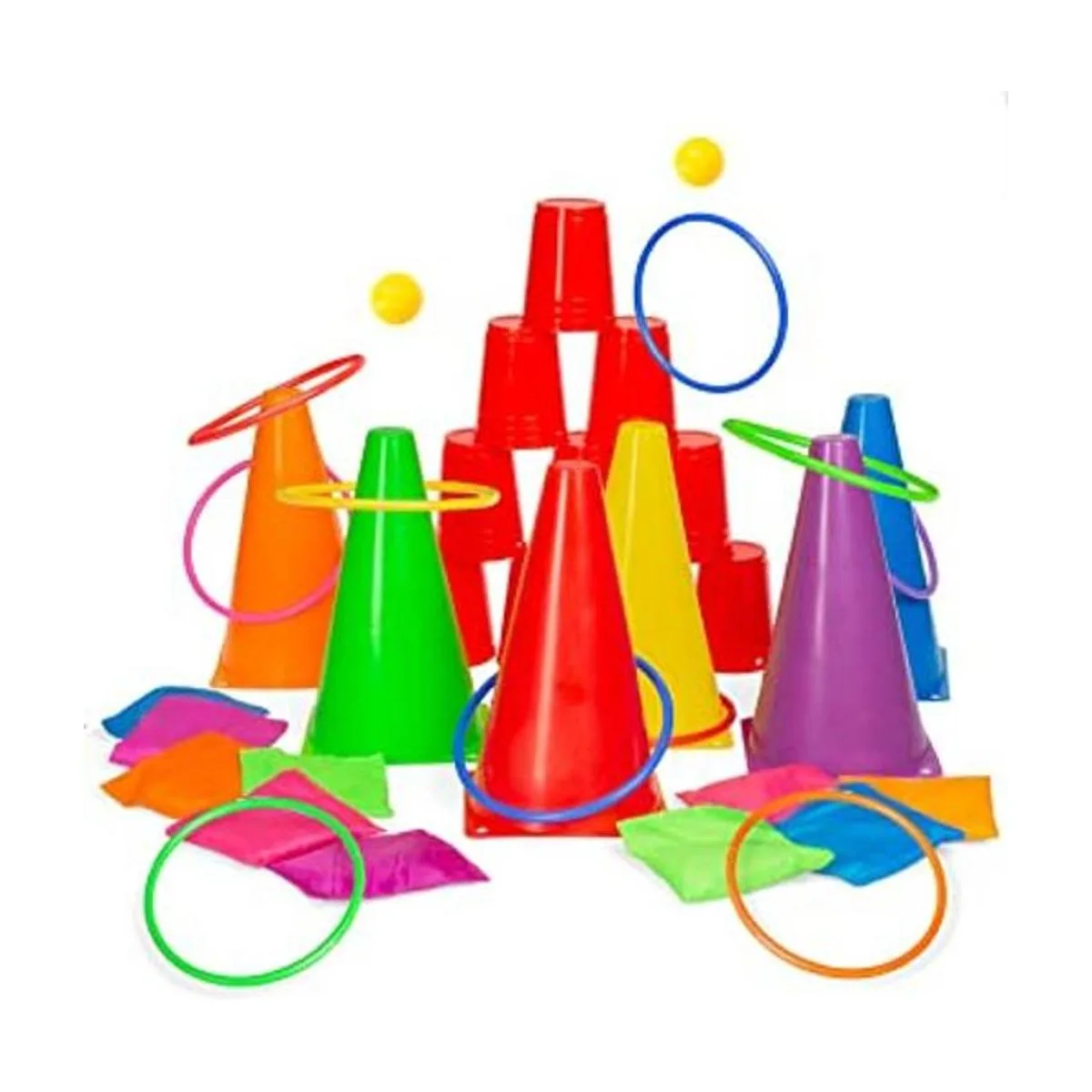 Ayuda a desarrollar la coordinación manoojo: jugar con 6 conos de colores y 10 anillos de lanzamiento ayuda a los niños a desarrollar su coordinación ojomano mientras disfrutan de un divertido juego familiar.