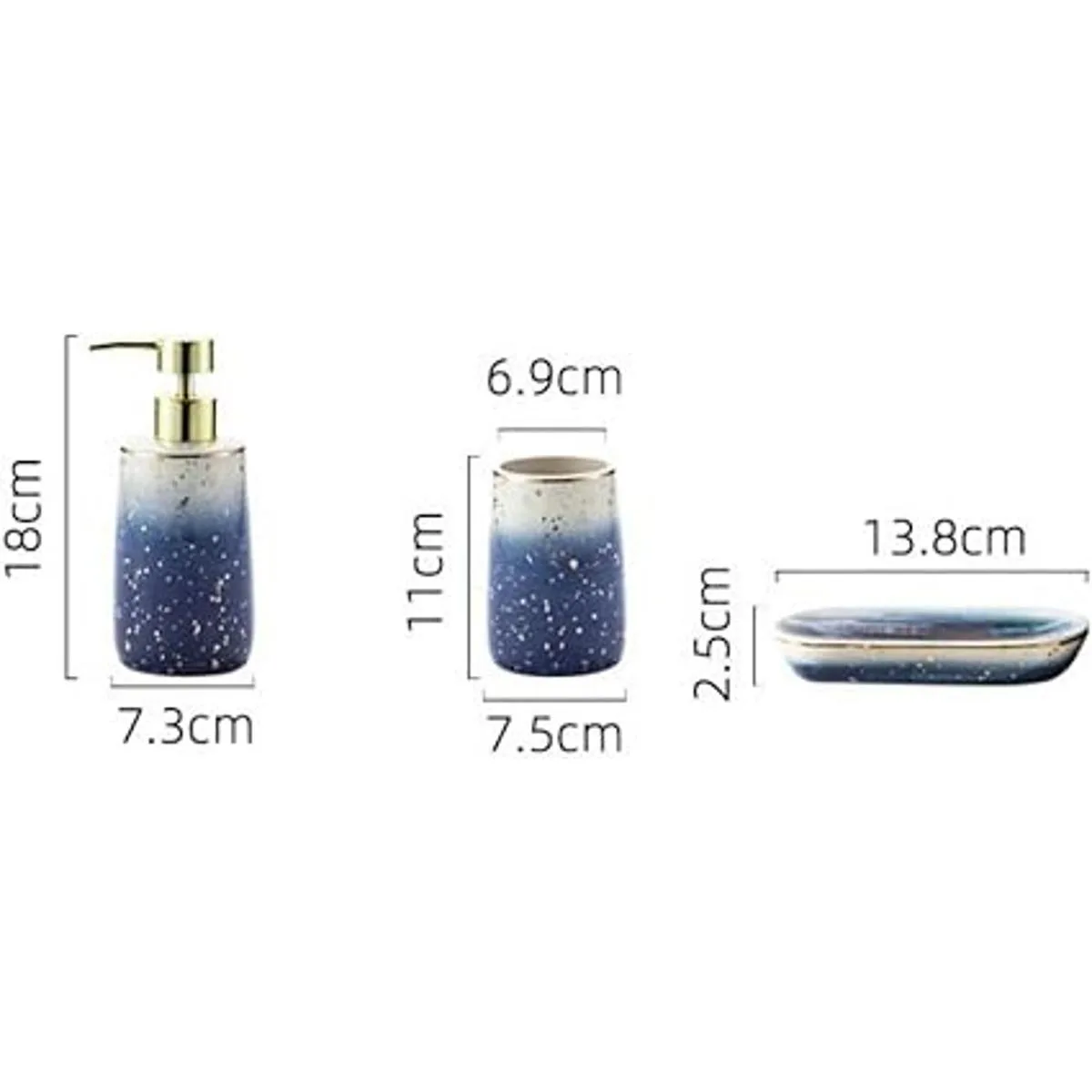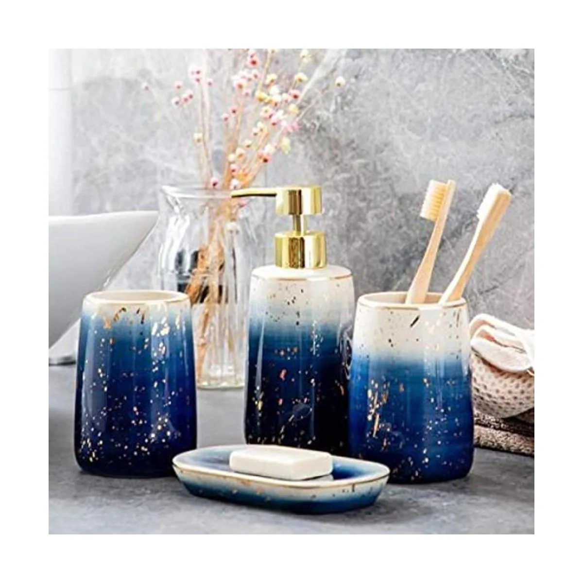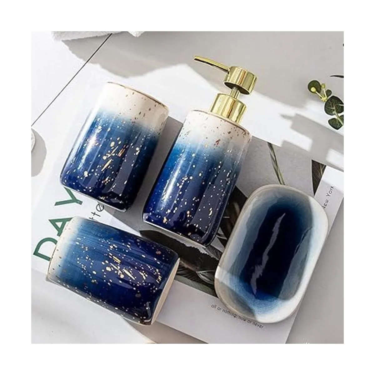 Juego de 4 accesorios de cerámica para el baño, juego de 4 lavadores de color azul degradado, 2 tazas de gárgaras, 1 jabonera, 1 dispensador de loción, ideas de regalo para el hogar para artículos de decoración del hogar