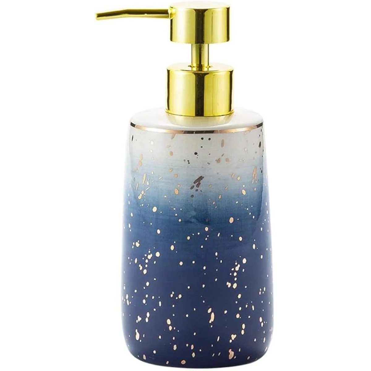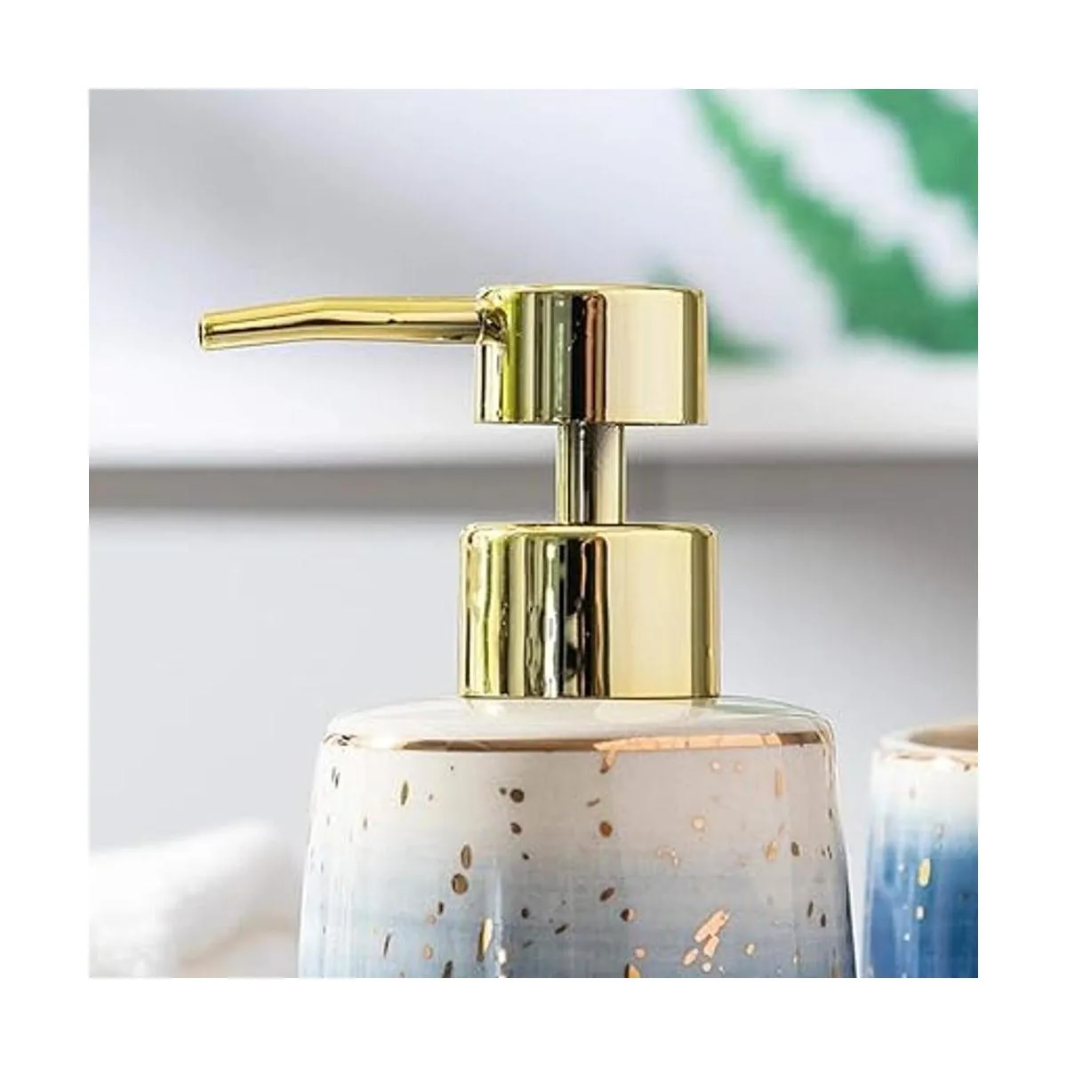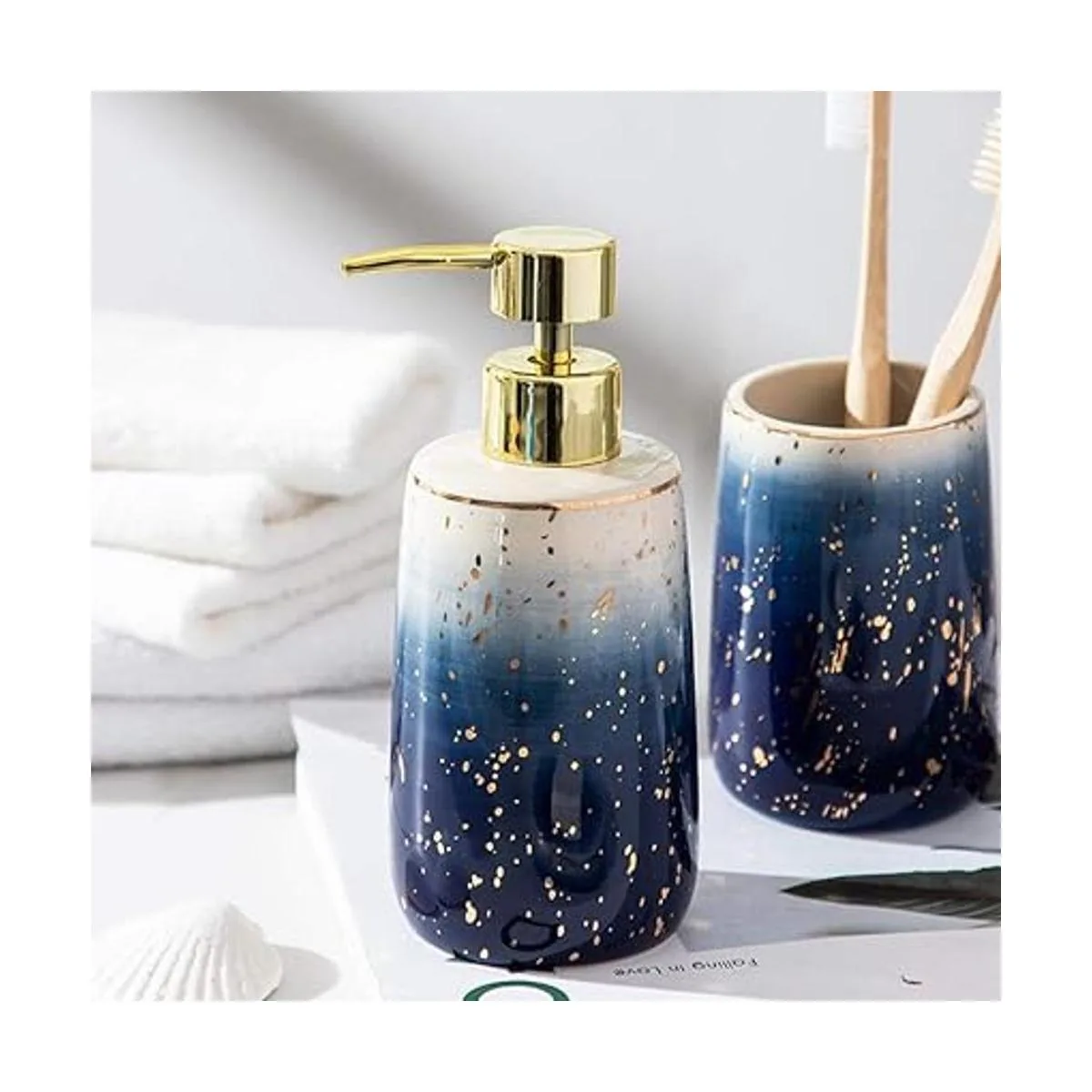 Juego de 4 accesorios de cerámica para el baño, juego de 4 lavadores de color azul degradado, 2 tazas de gárgaras, 1 jabonera, 1 dispensador de loción, ideas de regalo para el hogar para artículos de decoración del hogar
