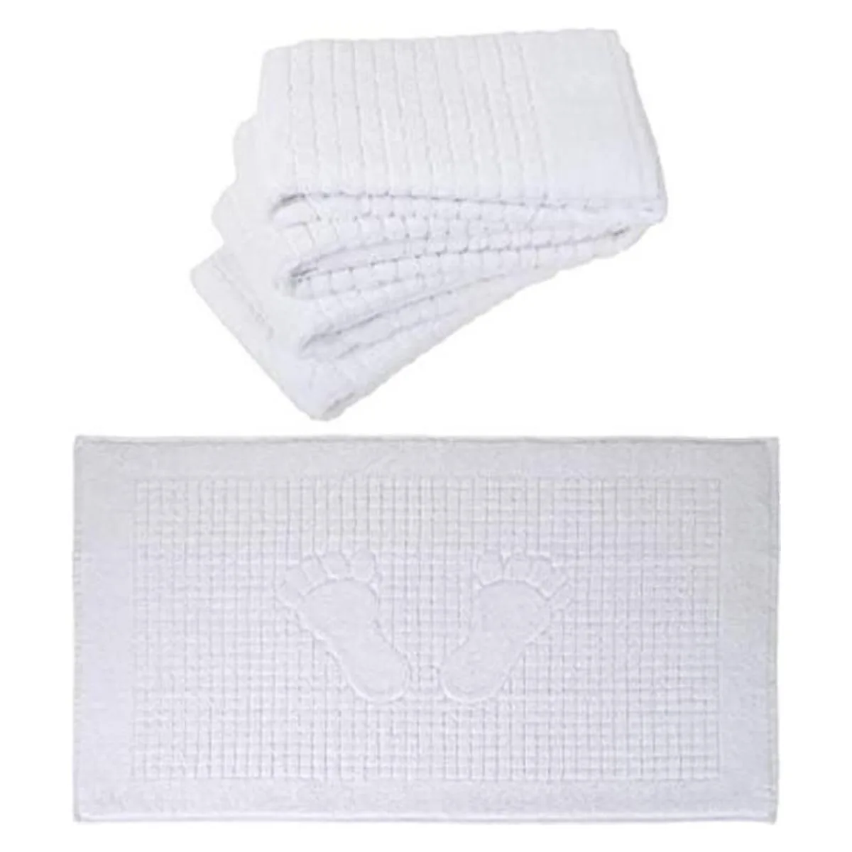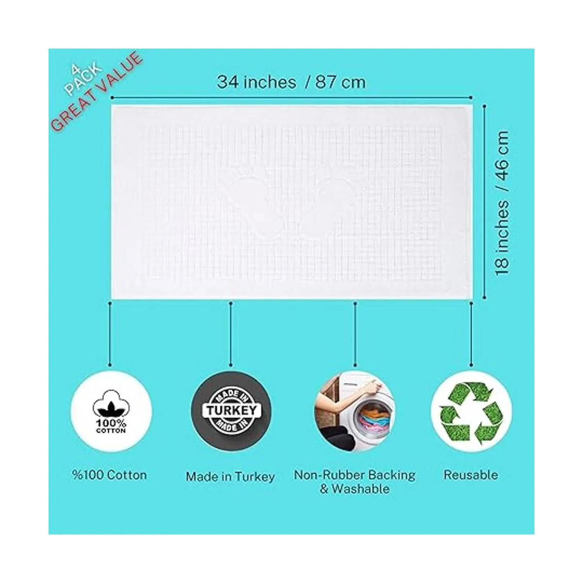 Juego de 4 alfombrillas de baño de algodón para baño, toallas de baño turcas Juego de 4 alfombrillas de baño 100 algodón, reversibles, lavables, absorbentes, toallas de pies 18 x 34 pulgadas, color blanco