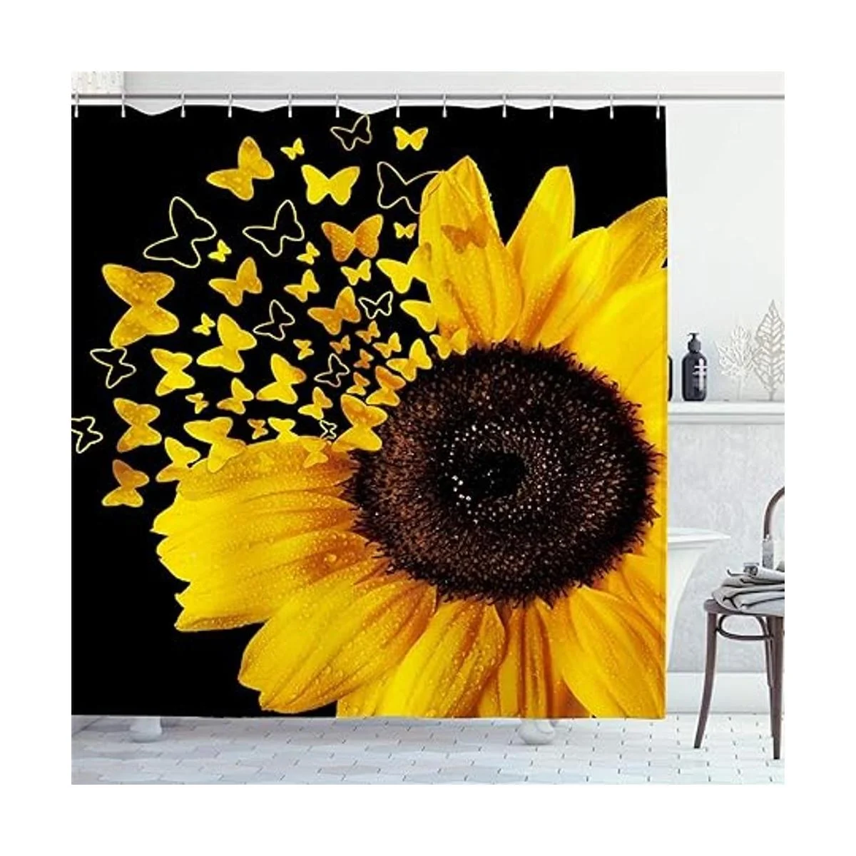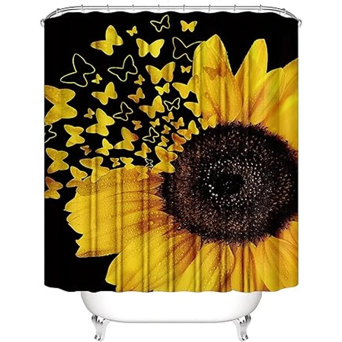 Resistente al agua y duradero: nuestro juego de cortinas de ducha de girasol es de tela de poliéster extremadamente duradera, evita salpicaduras de agua fuera de la zona del baño y mantiene tu hogar/baño/inodoro limpio y fresco.