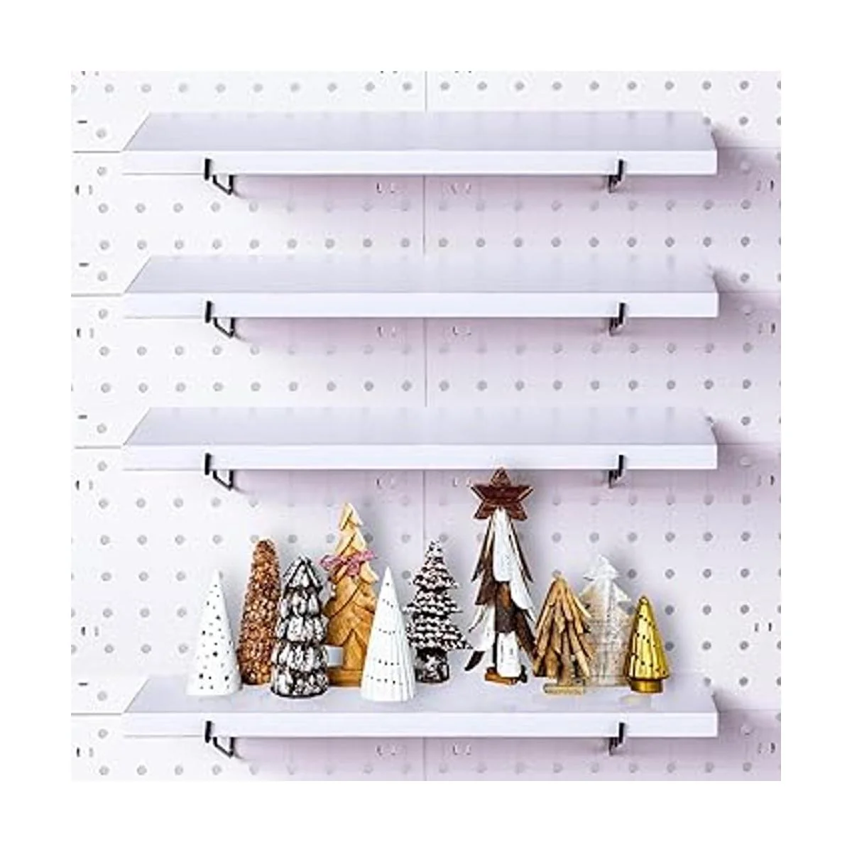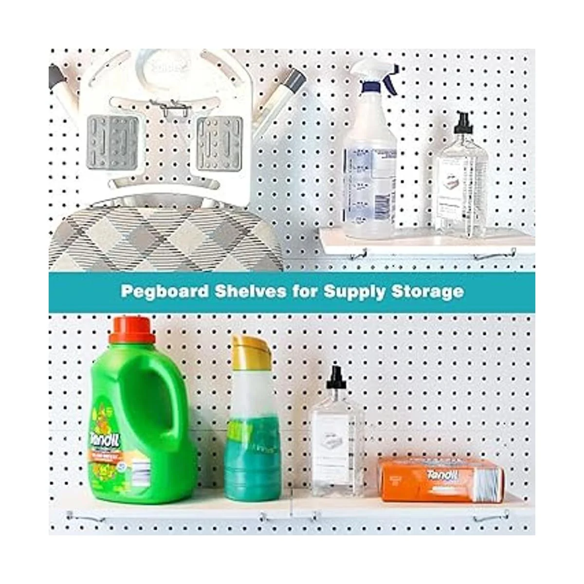 Juego de 4 estantes de tablero de clavijas color blanco, estantes de tablero de clavijas con ganchos para tablero de clavijas Estante de almacenamiento para accesorios de tablero de clavijas para sala de manualidades, garaje, banco de trabajo, cocina, organizador de herramientas