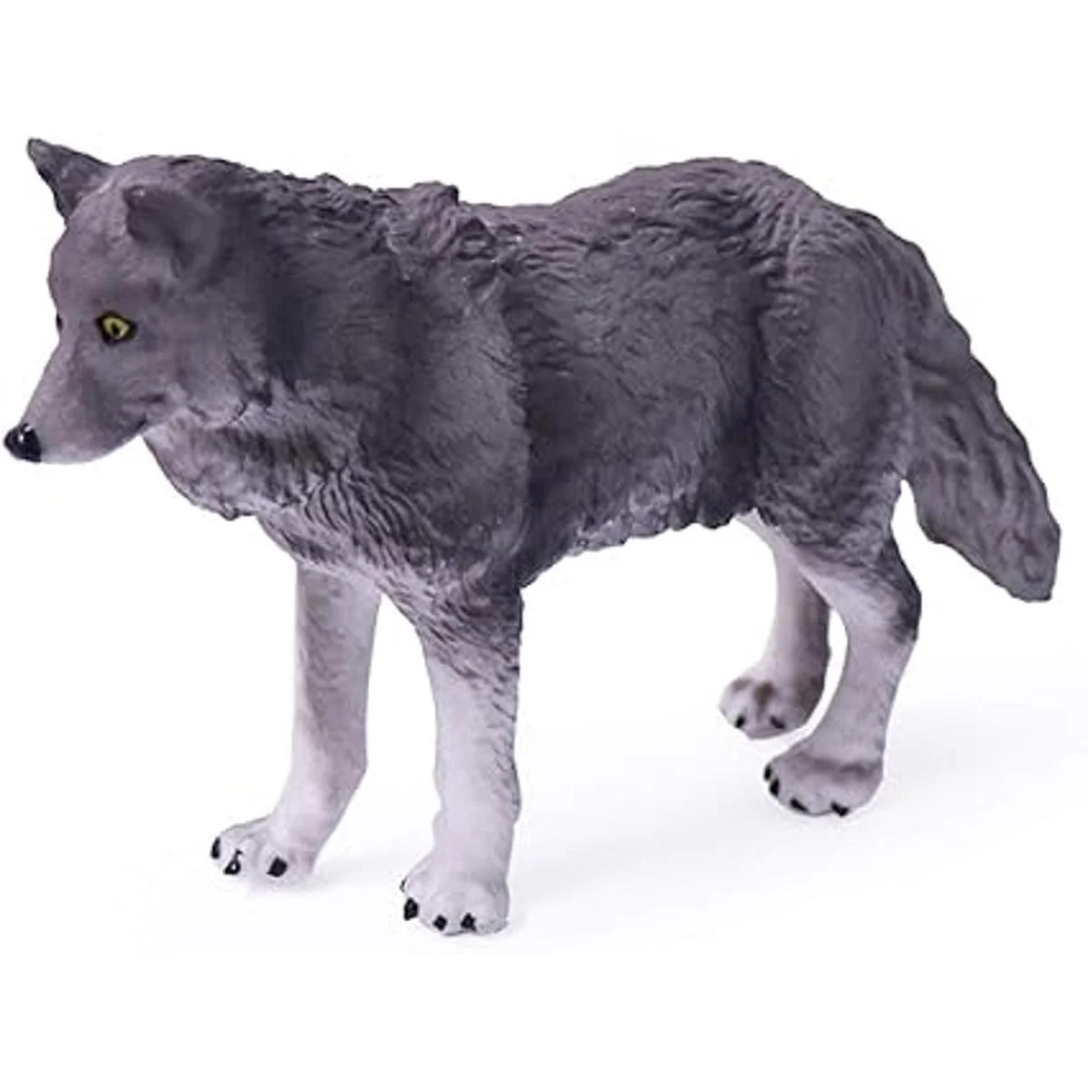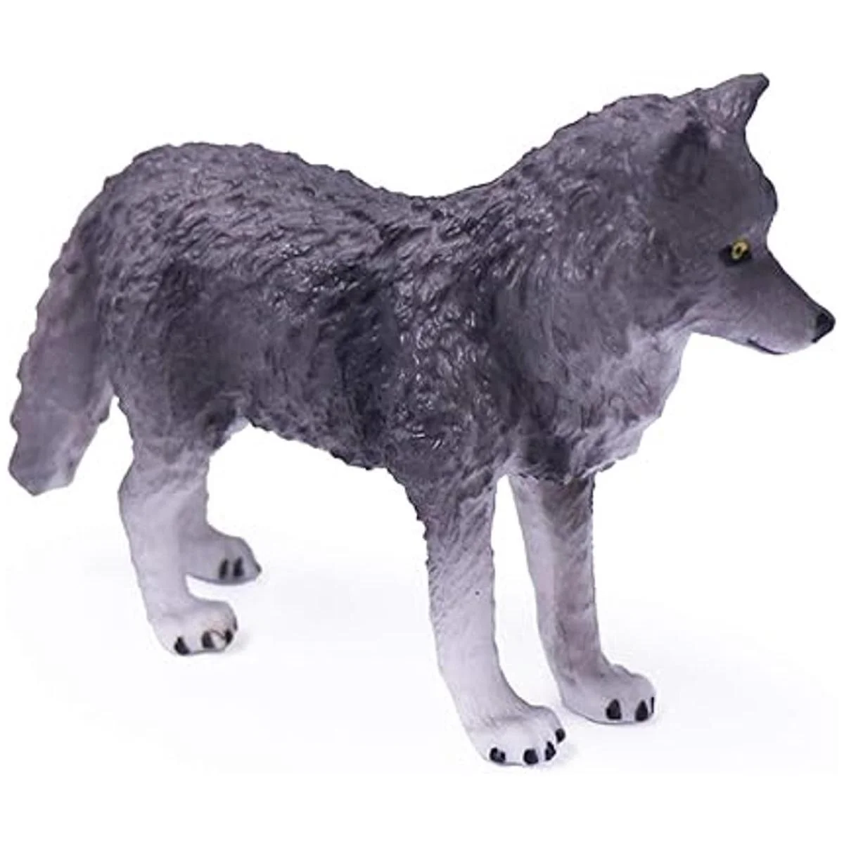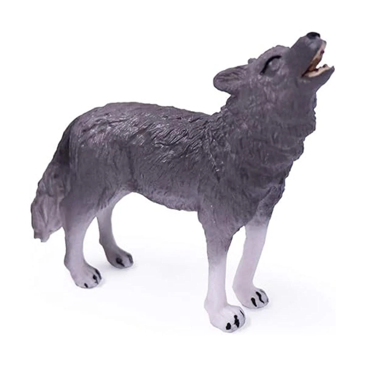 El juego de 4 figuras de juguete de lobos grises incluye: lobo aullador 3.15 x 1 x 3 pulgadas, lobo caminante 4.8 x 0.86 x 2.2 pulgadas, lobo de pie 4 x 0.95 x 2.5 pulgadas y 1 lobo joven de 3.4 x 0.9 x 2.2 pulgadas.