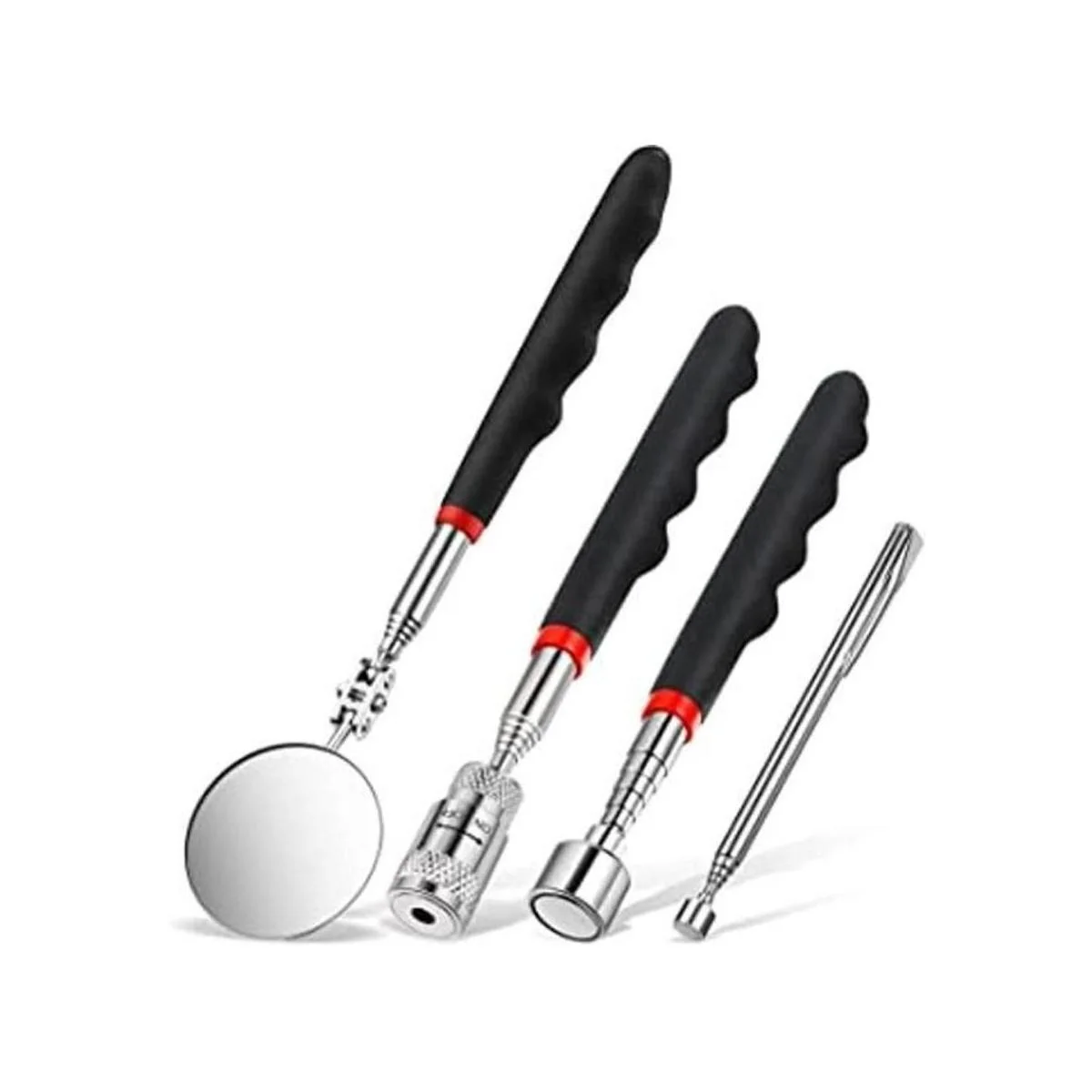 Juego de 4 herramientas de recogida magnética de espejo de inspección telescópico que incluye 2 lb20 lb telescopio, dispositivo magnético telescópico, 8 lb LED Light PickUp Rod Grabber, espejo de inspección para cumpleaños Día del Padre