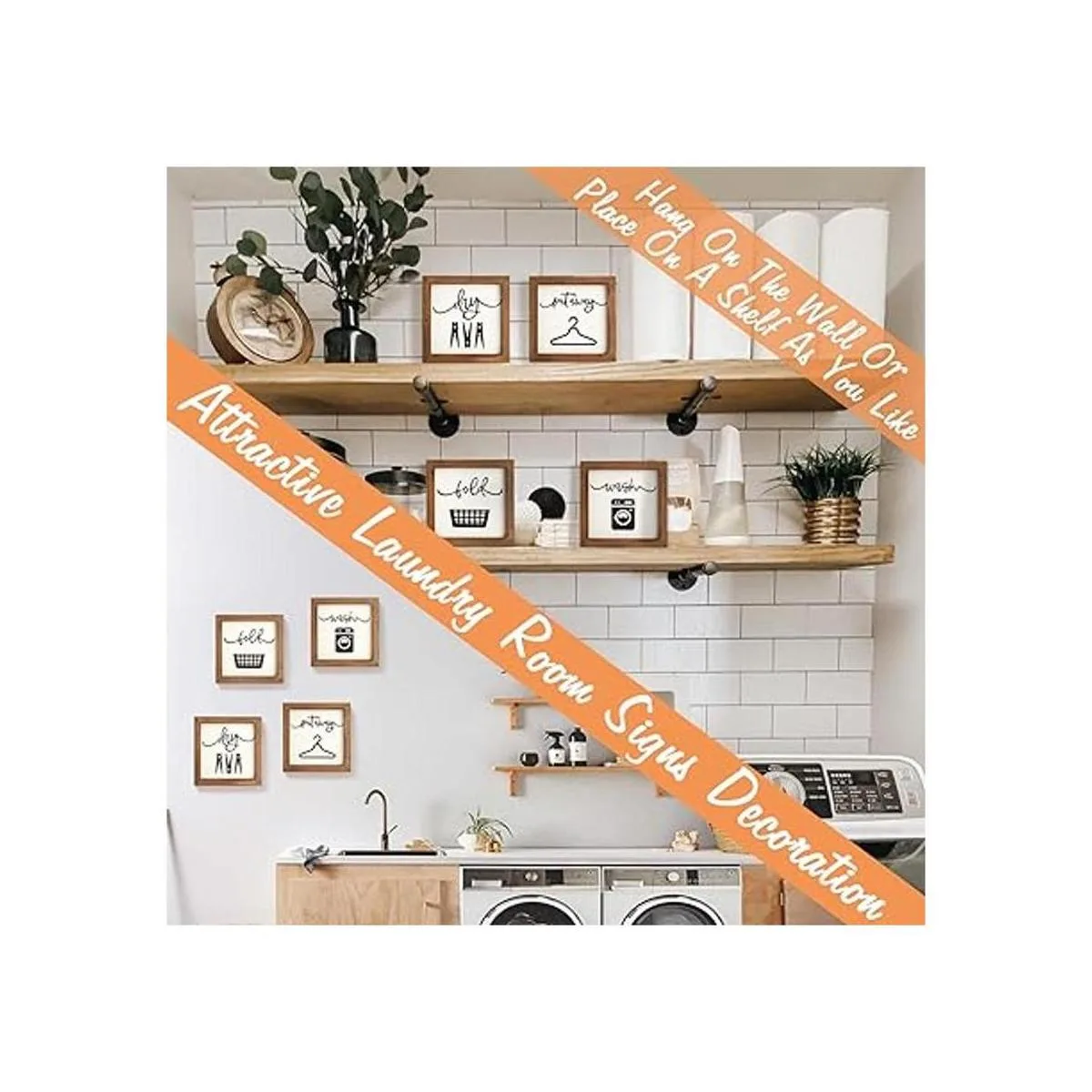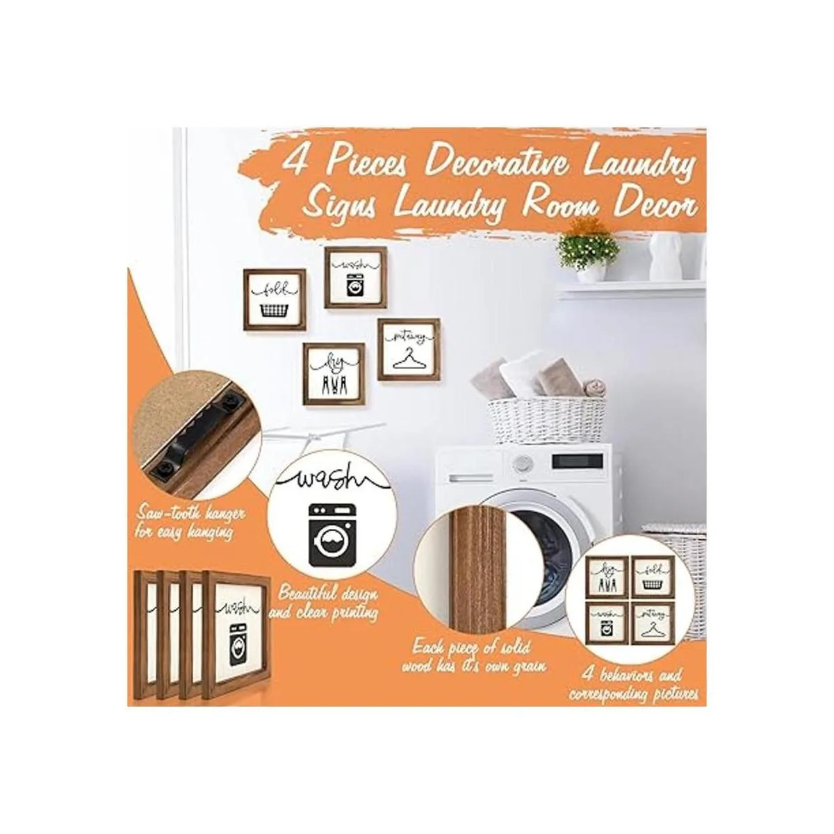 Fácil de instalar: los letreros rústicos de lavandería no requieren montaje y son fáciles de usar. Puedes colgarlos fácilmente de la pared de la lavandería a través del colgador de dientes de sierra en la parte posterior de cada pieza, o colocarlos directamente en el armario de lavandería.