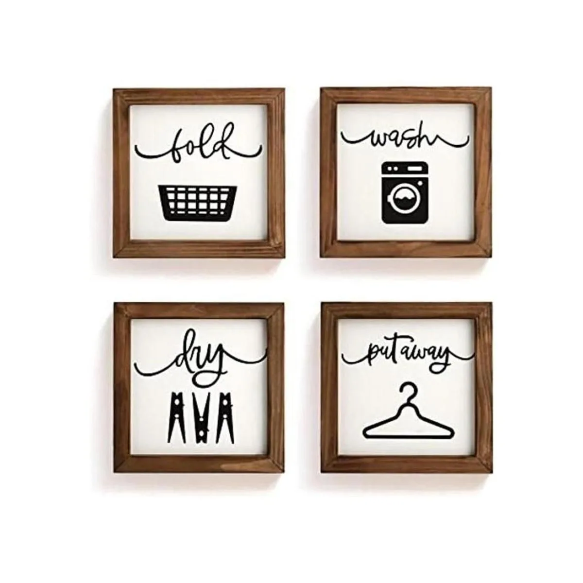 Juego de 4 letreros de decoración de lavandería para pared, granja, para lavar y secar, plegables, decoración rústica de lavandería para lavandería, estante de lavandería, arte de pared con marco de madera, letrero decorativo de lavandería, 8 x 8 pulgadas