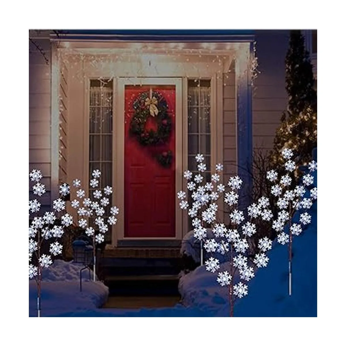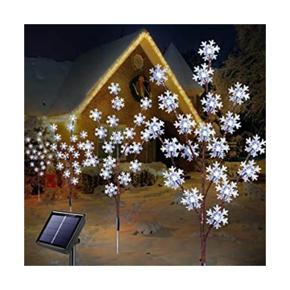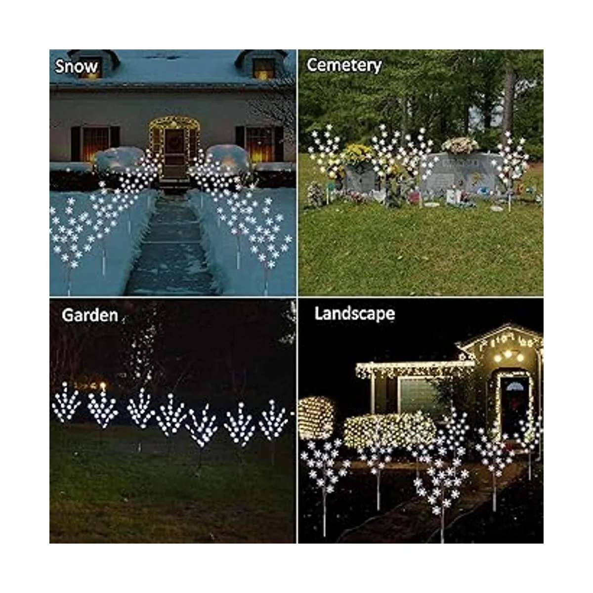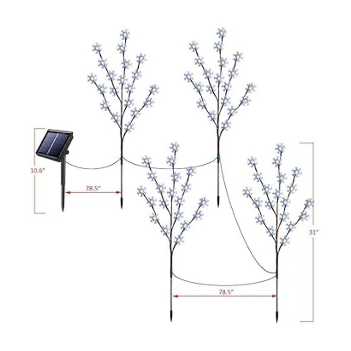 1. Luces solares de árbol de copo de nieve de Navidad: paquete de 4 árboles solares de copo de nieve de Navidad con 80 LED, hemos actualizado el brillo y la cantidad de las cuentas de la lámpara. Muy adecuado para decoraciones de Navidad y vacaciones