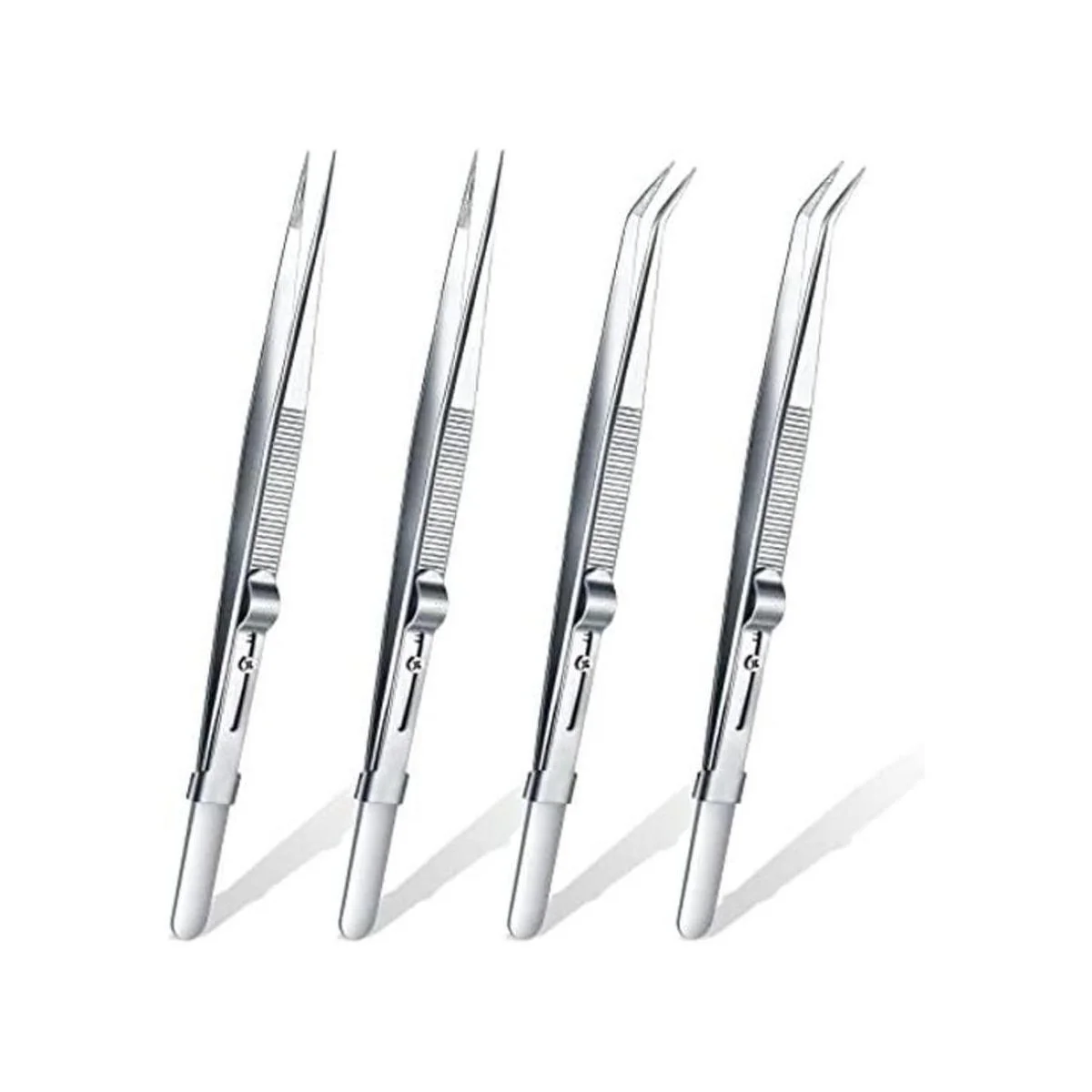 Juego de 4 pinzas de soldadura de precisión ESD industriales, incluye pinzas rectas de punta fina y punta curva de bloqueo para joyería y manualidades