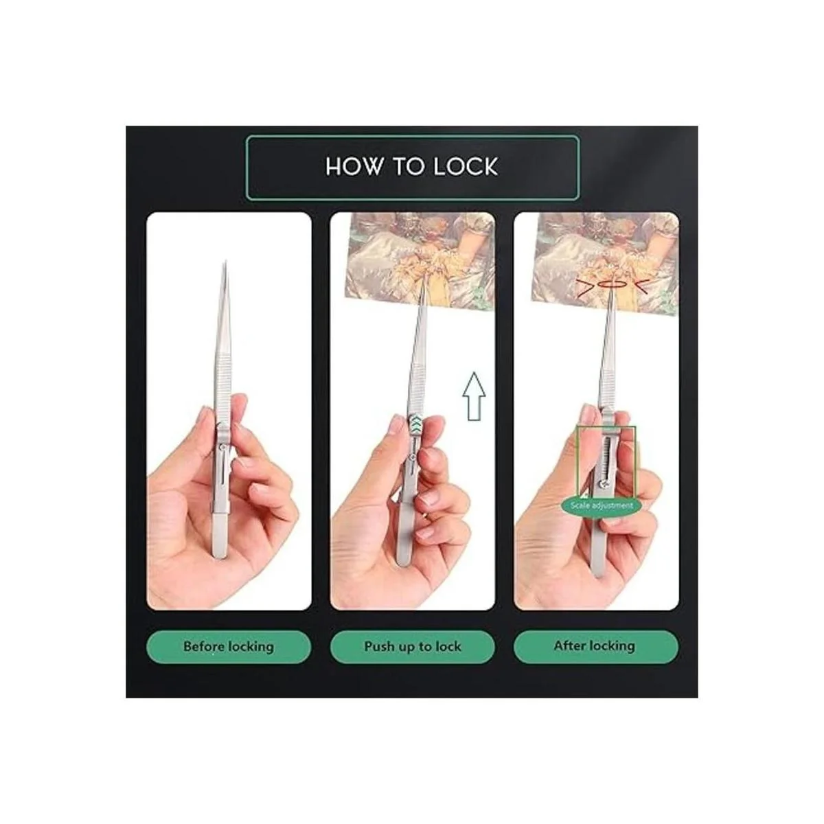 Bonito equipo: equipado con cubiertas protectoras, estas pinzas de precisión de bloqueo se pueden almacenar de forma segura cuando no están en uso; además, estas pinzas con cabeza puntiaguda pueden recoger mini artículos, como cabello, componentes electrónicos