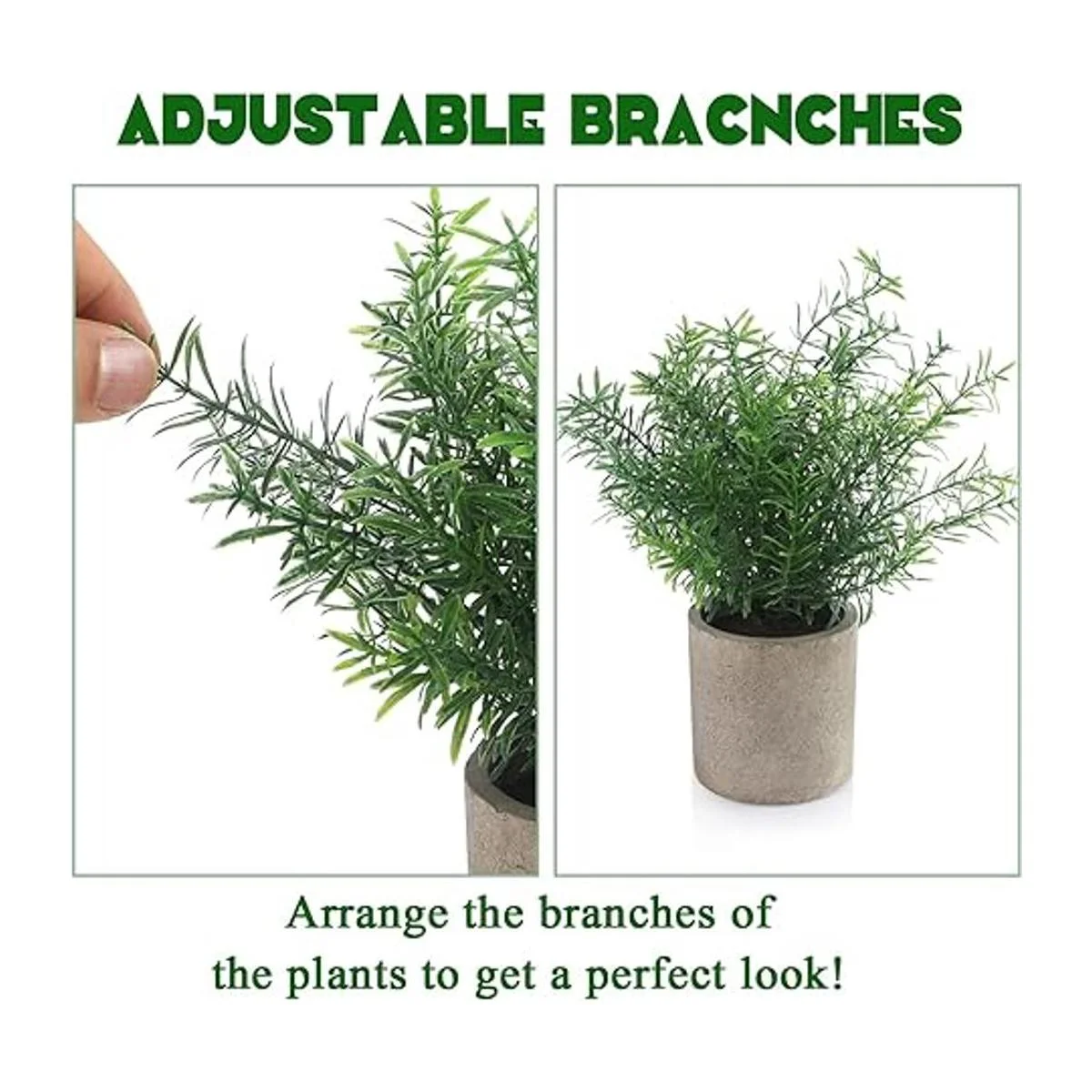 Material de alta calidad: cada planta sintética está hecha de plástico y colocada en una maceta de pulpa de papel resistente que tiene tierra de espuma simulada. No requieren recorte ni riego y se mantendrán frescos durante todo el año. Dado que estas macetas están hechas de pulpa de papel, no las pongas en agua