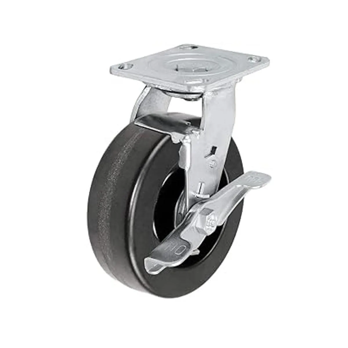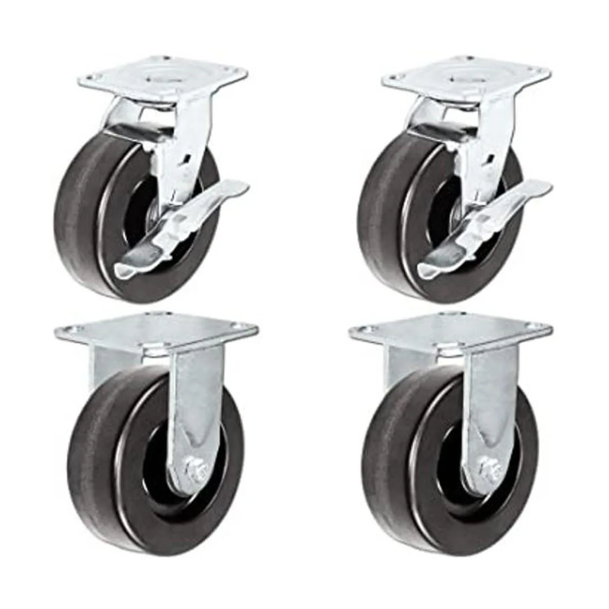 Juego de 4 ruedas de 6 x 2 pulgadas con ruedas fenólicas, capacidad de 4.800 libras por juego de 4, 2 pivotes con frenos de bloqueo y 2 ruedas rígidas, marca CasterHQ
