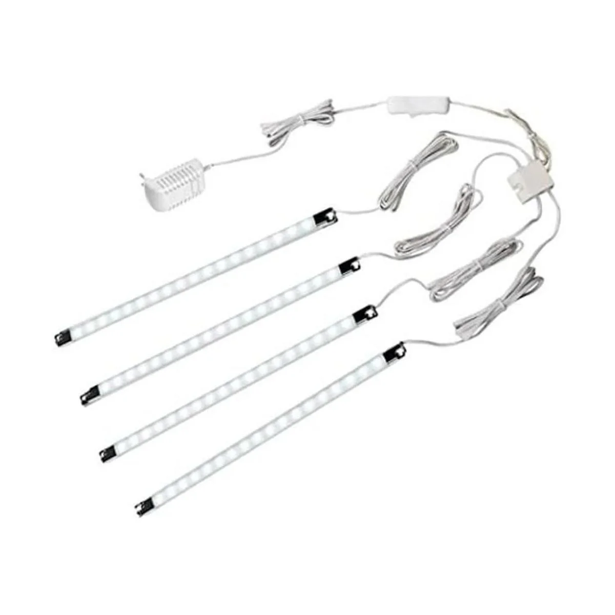 Juego de 4 tiras de luz LED, luz blanca fría para debajo del gabinete, lámpara LED de ahorro de energía para debajo de la encimera, kit de tira LED blanco frío