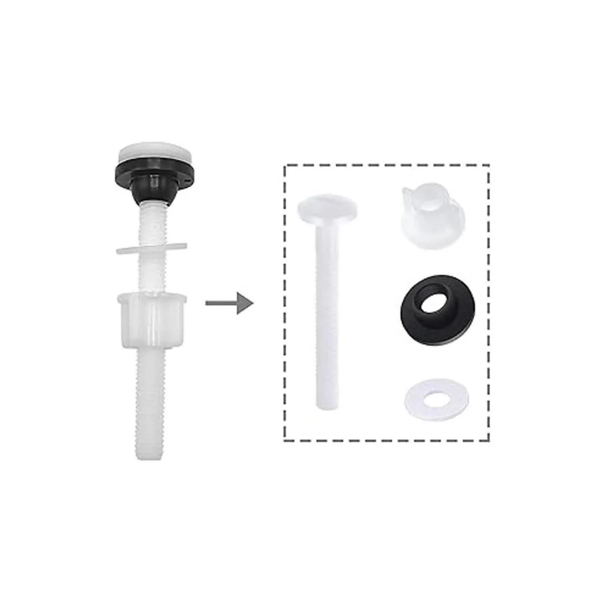 Juego de 4 tornillos de plástico para tanque de inodoro, kit de reparación de inodoro de baño de tanque a tazón, tornillos de ajuste y sellado, pernos de cabeza de bandeja para inodoro de dos piezas blanco