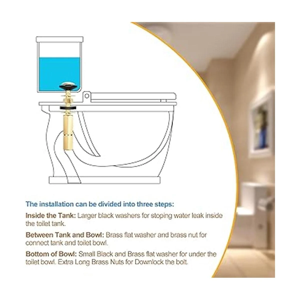 Práctico kit: hay grandes arandelas de goma en la parte superior e inferior de los pernos, que se pueden aplicar para fijar y sellar el tanque del inodoro y el inodoro