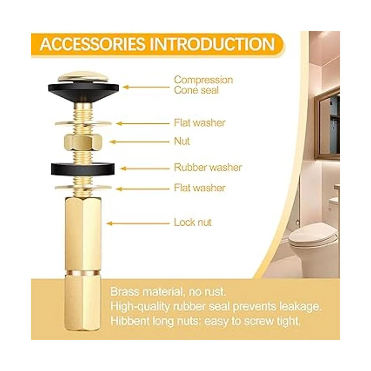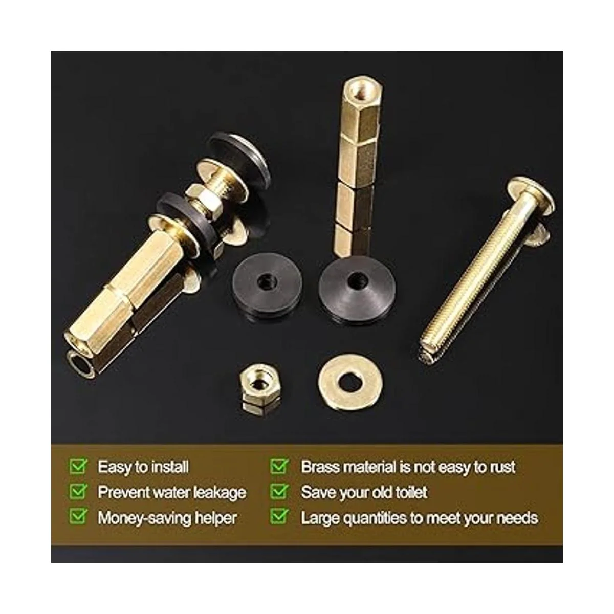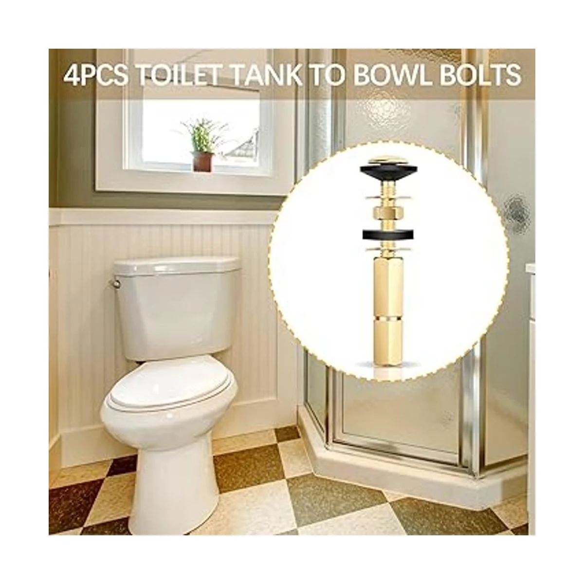 Juego de 4 tornillos para inodoro de acero inoxidable y latón chapados en acero inoxidable y latón resistentes con tuercas largas, arandelas de goma doble para tornillos de tanque de inodoro para tornillos de tanque de inodoro