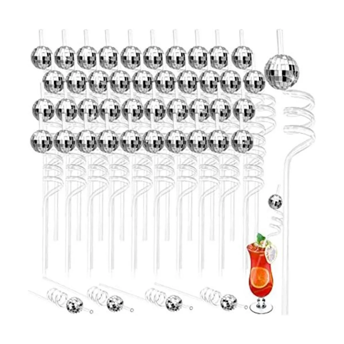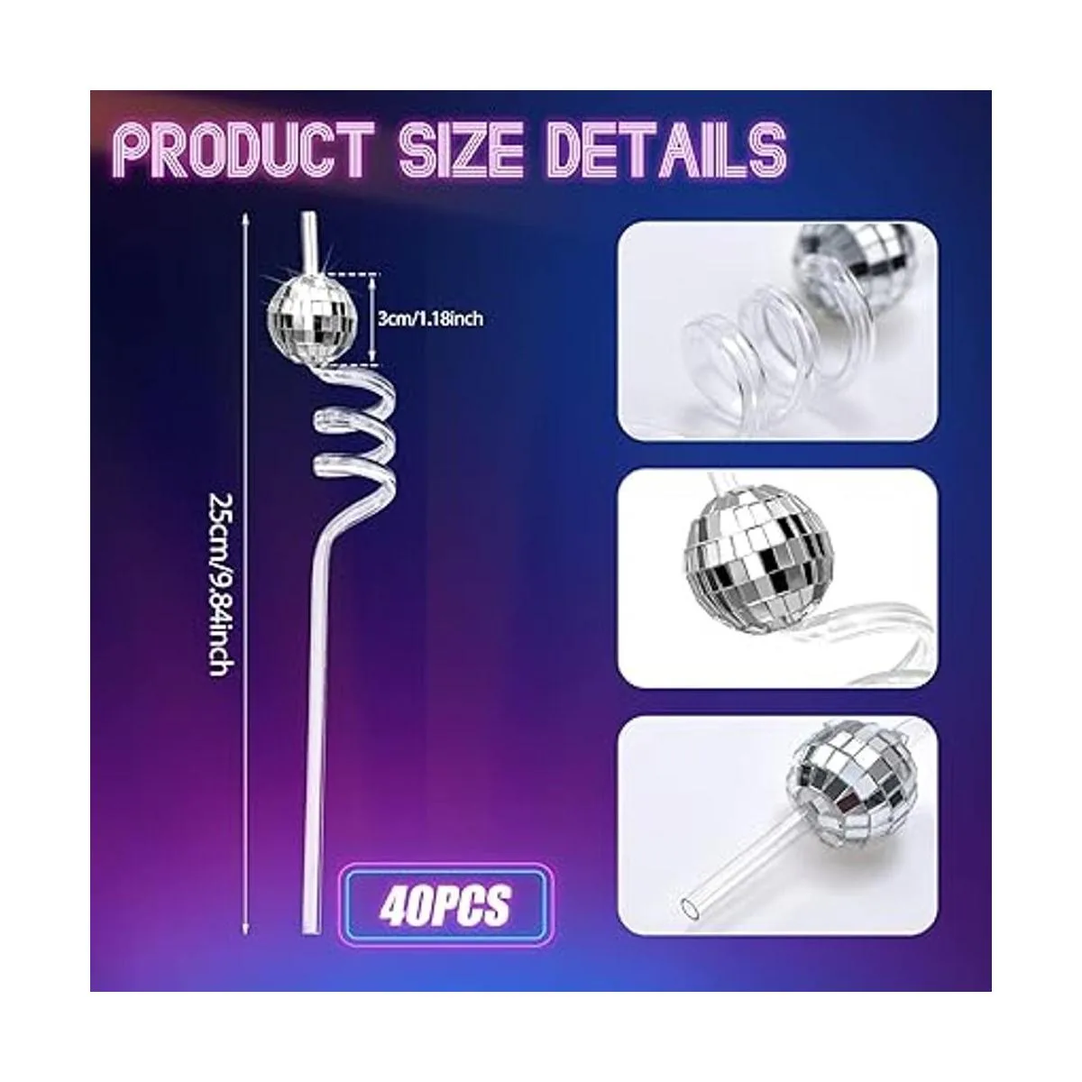 Decoraciones de fiesta de discoteca: el paquete contiene 40 pajitas decorativas de plástico con bolas de discoteca, y la cantidad es adecuada para decorar tu bebida para tus invitados en fiestas temáticas de discoteca, satisfaciendo tus diversas demandas decorativas