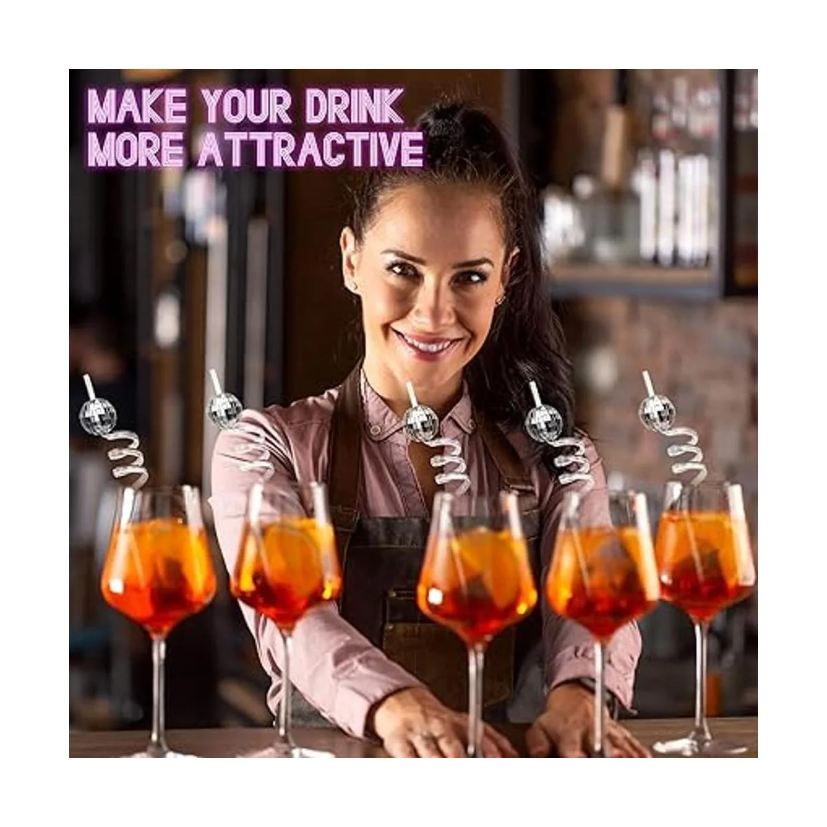 Fiable y sólido: estas pajitas de bola de discoteca están hechas de material PET de calidad, no tóxico e inodoro, lo suficientemente resistentes como para soportar un uso constante sin mostrar desgaste; hechas de plástico BPA, la bola redonda de discoteca no se rompe ni se decolora fácilmente; ambas son ligeras y firmes, y te durarán muchas vacaciones y eventos felices
