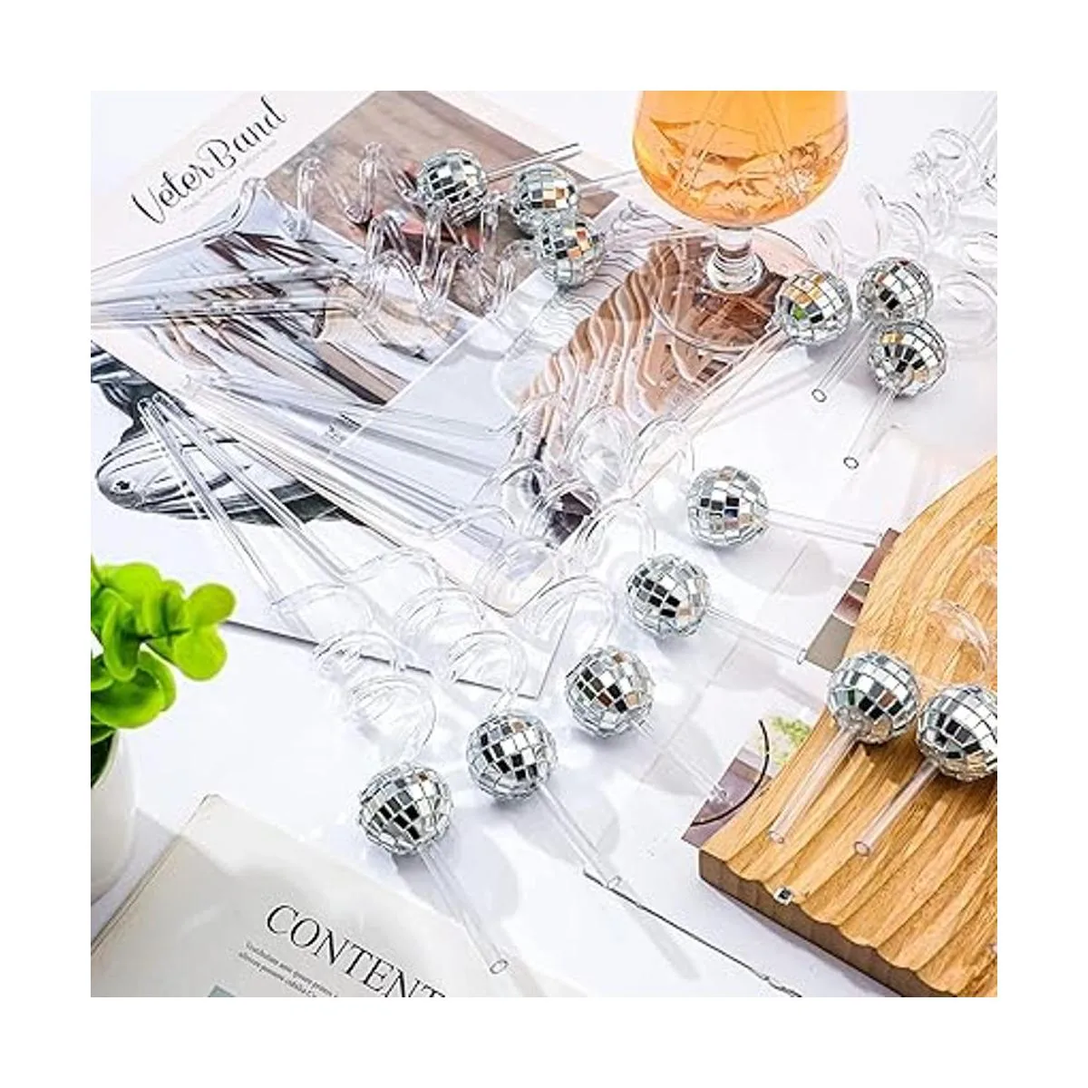 Brillante y reflectante: nuestra pajita decorativa de discoteca está diseñada con muchas pequeñas facetas de espejo en la misma forma y tamaño, se ve elegante y brillante, y refleja la luz desde todas las direcciones con la forma redonda, ofreciendo a tu fiesta hermosos efectos visuales