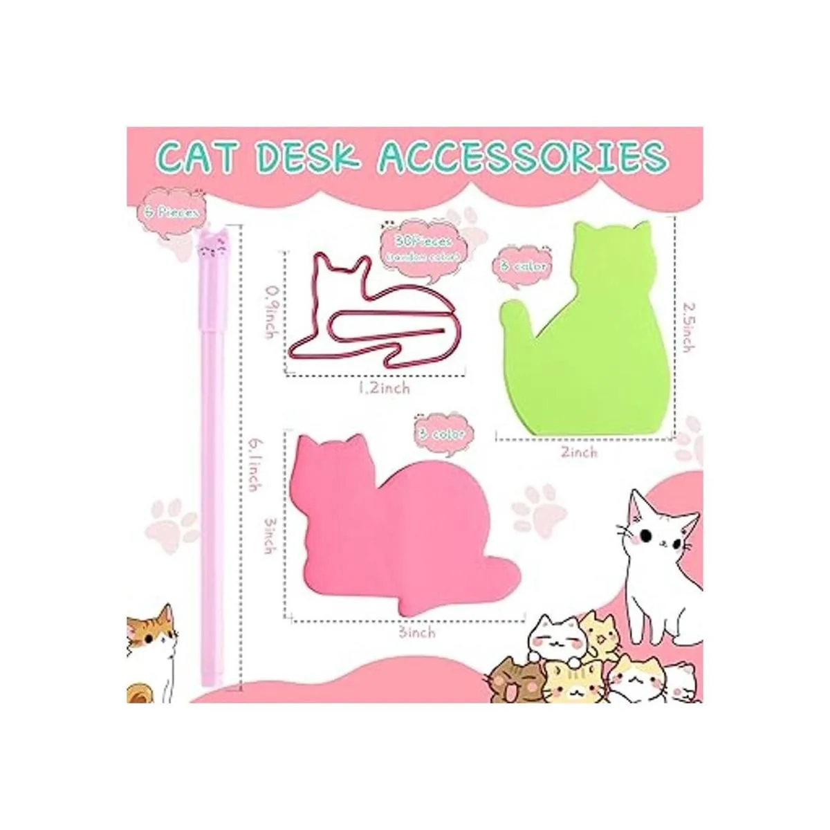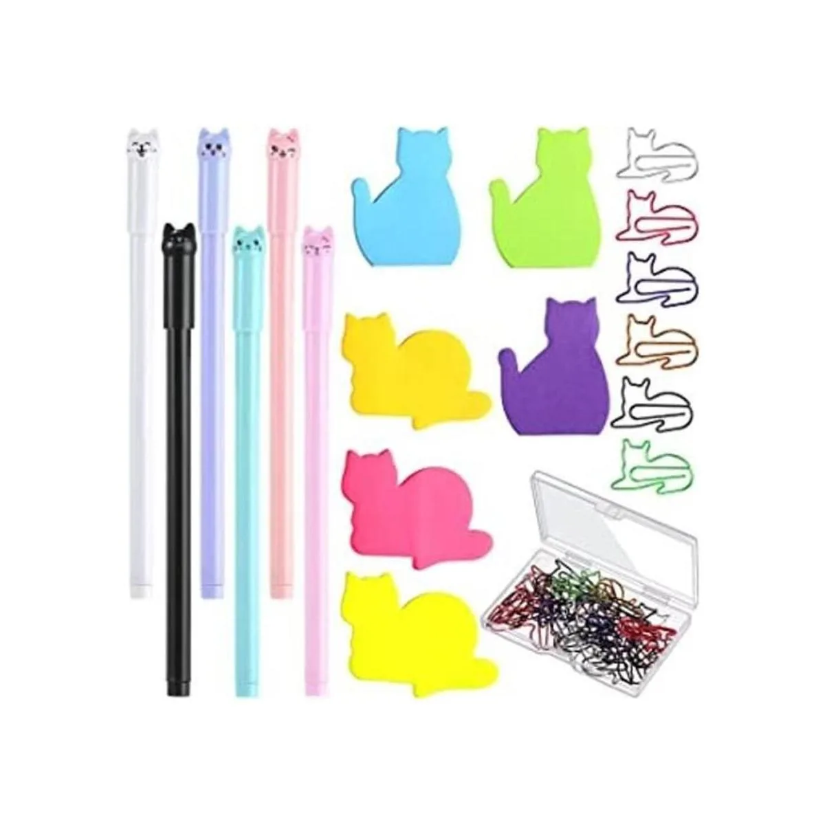 Juego de 42 piezas de papelería de 6 colores, bonitas notas adhesivas, 30 clips de papel y 6 piezas lindos para amantes de los bolígrafos, regalos encantadores de escritorio de oficina, accesorios para trabajo, escuela, suministros de oficina gato bonito