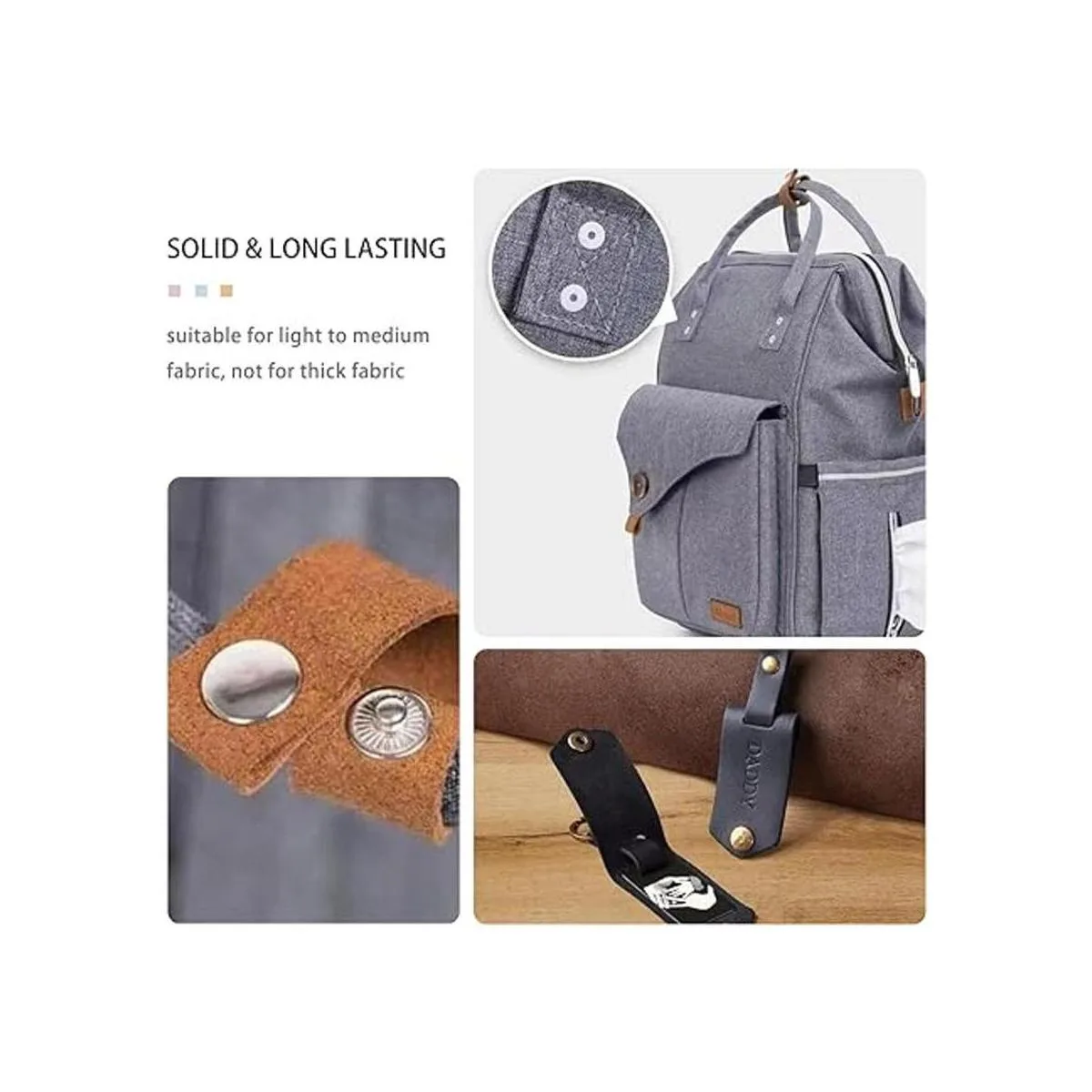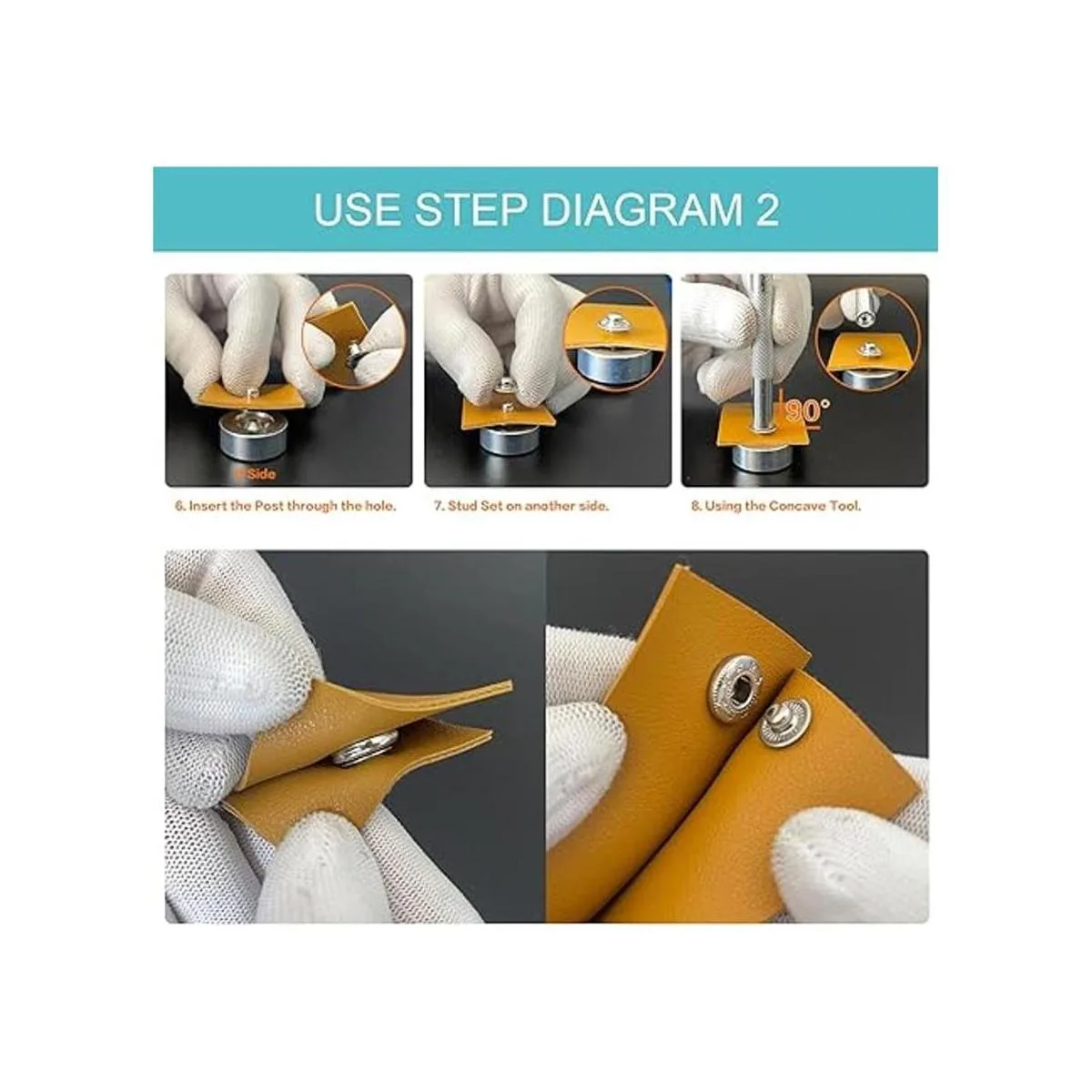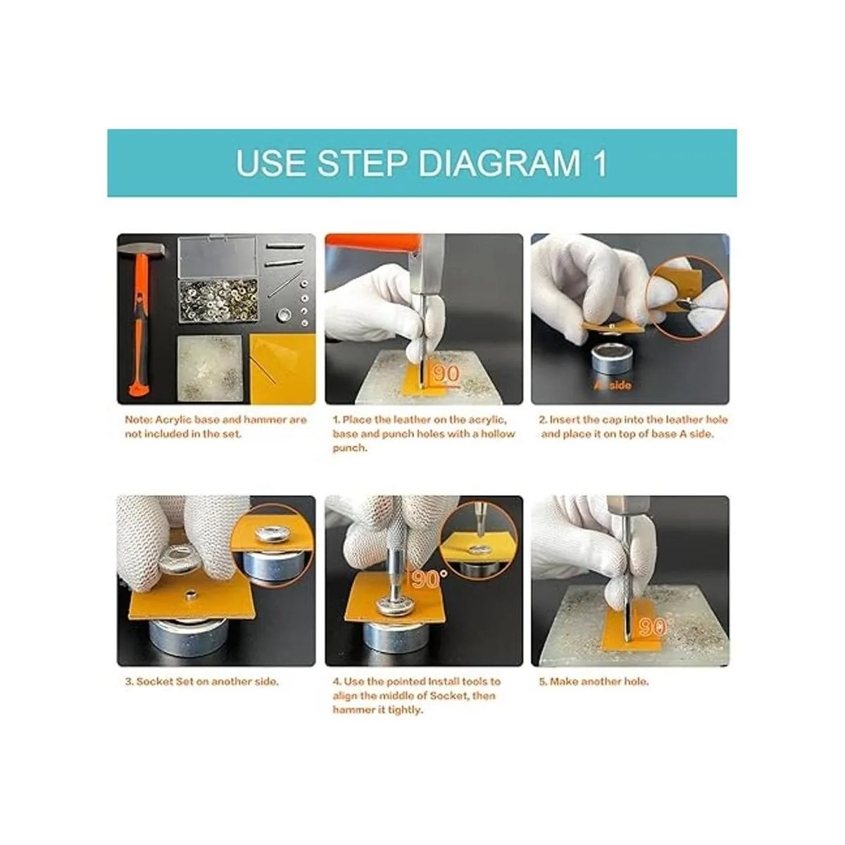 Atención al uso Los broches de cuero resistentes son adecuados para tela de 0.04 a 0.17 pulgadas de grosor, por favor, no utilices demasiada fuerza cuando golpees los cierres en caso de deformación.