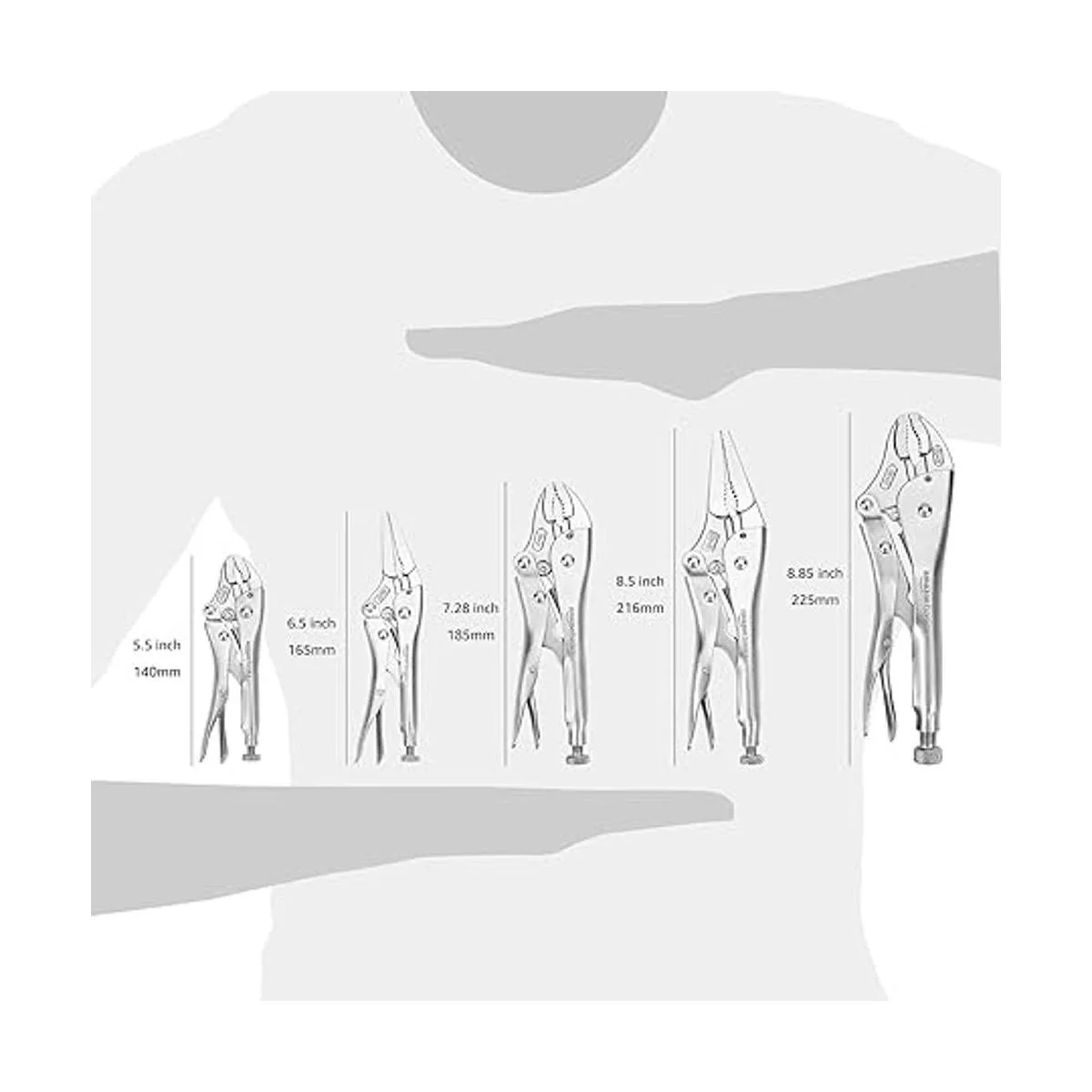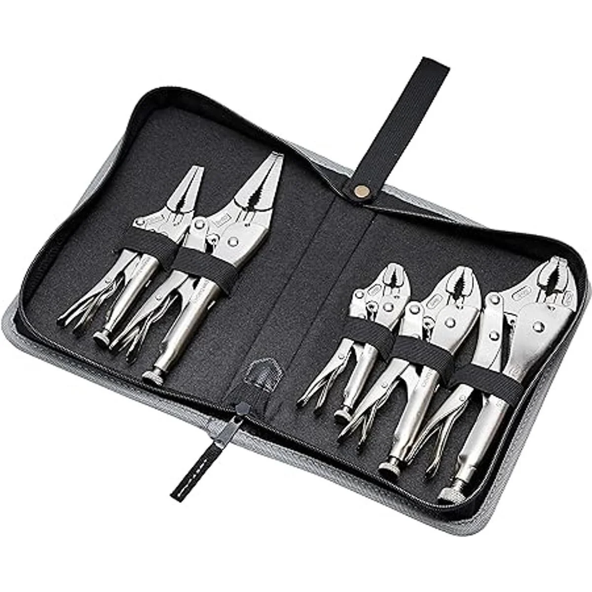 Juego de 5 alicates de bloqueo CRV y cortadores de alambre con estuche de transporte, 2 rectos, 3 mandíbula curvada, 6.510 pulgadas