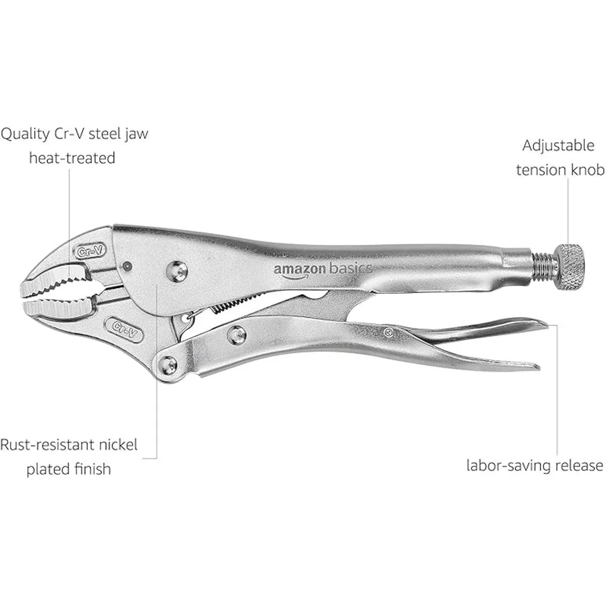 Incluye alicates de mandíbula recta de 6.5 y 9 pulgadas con alicates de mandíbula curvada de 5, 7 y 10 pulgadas