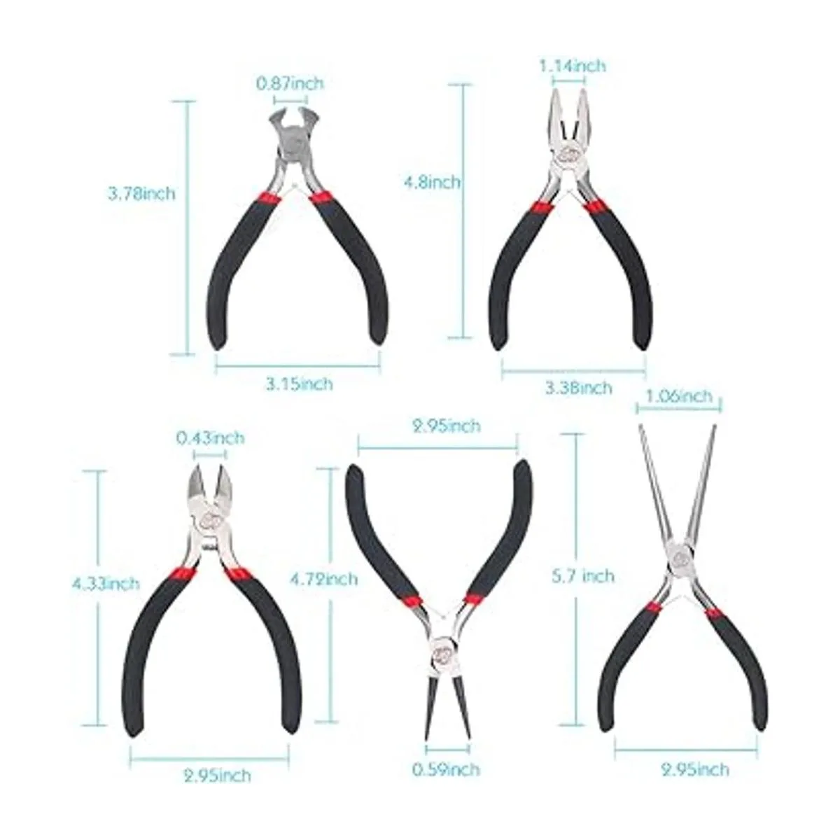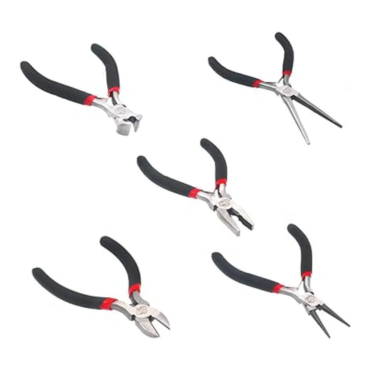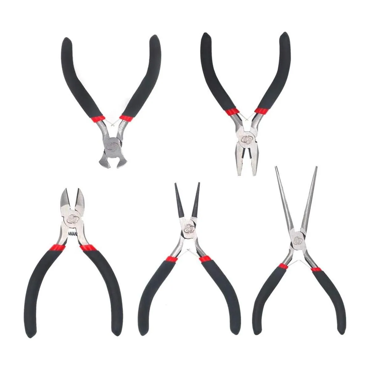 Juego de 5 alicates de mano profesional incluye alicates para nariz, alicates de punta redonda, alicates de corte diagonal, alicates de corte final