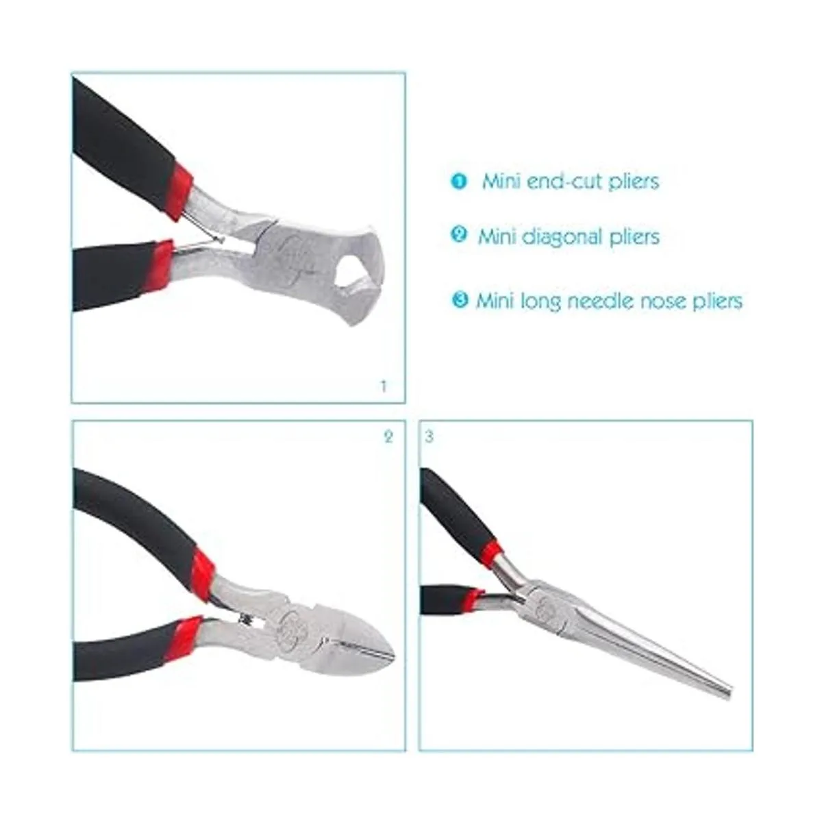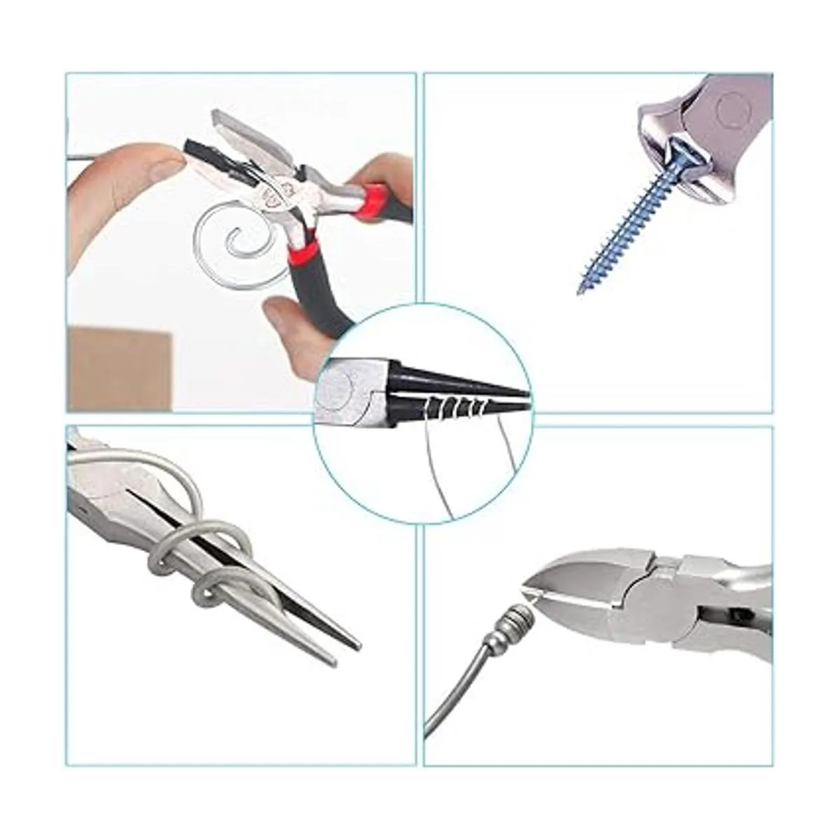 Alicates incluidos: alicates de punta larga, alicates de corte final, alicates diagonales, alicates de punta redonda, alicates de linamán.