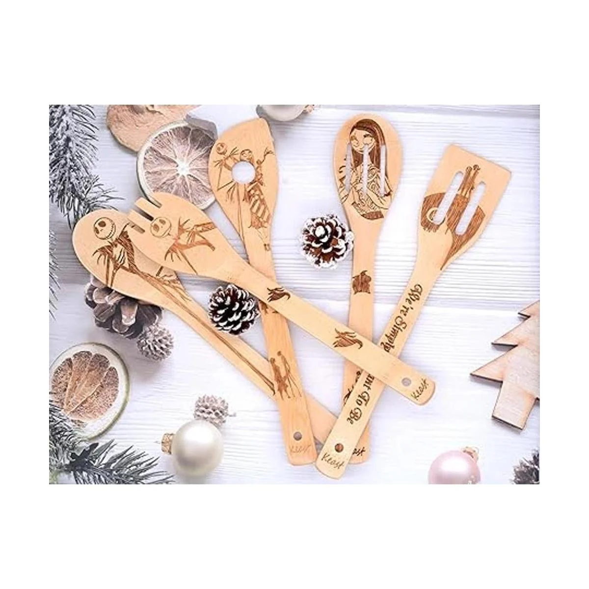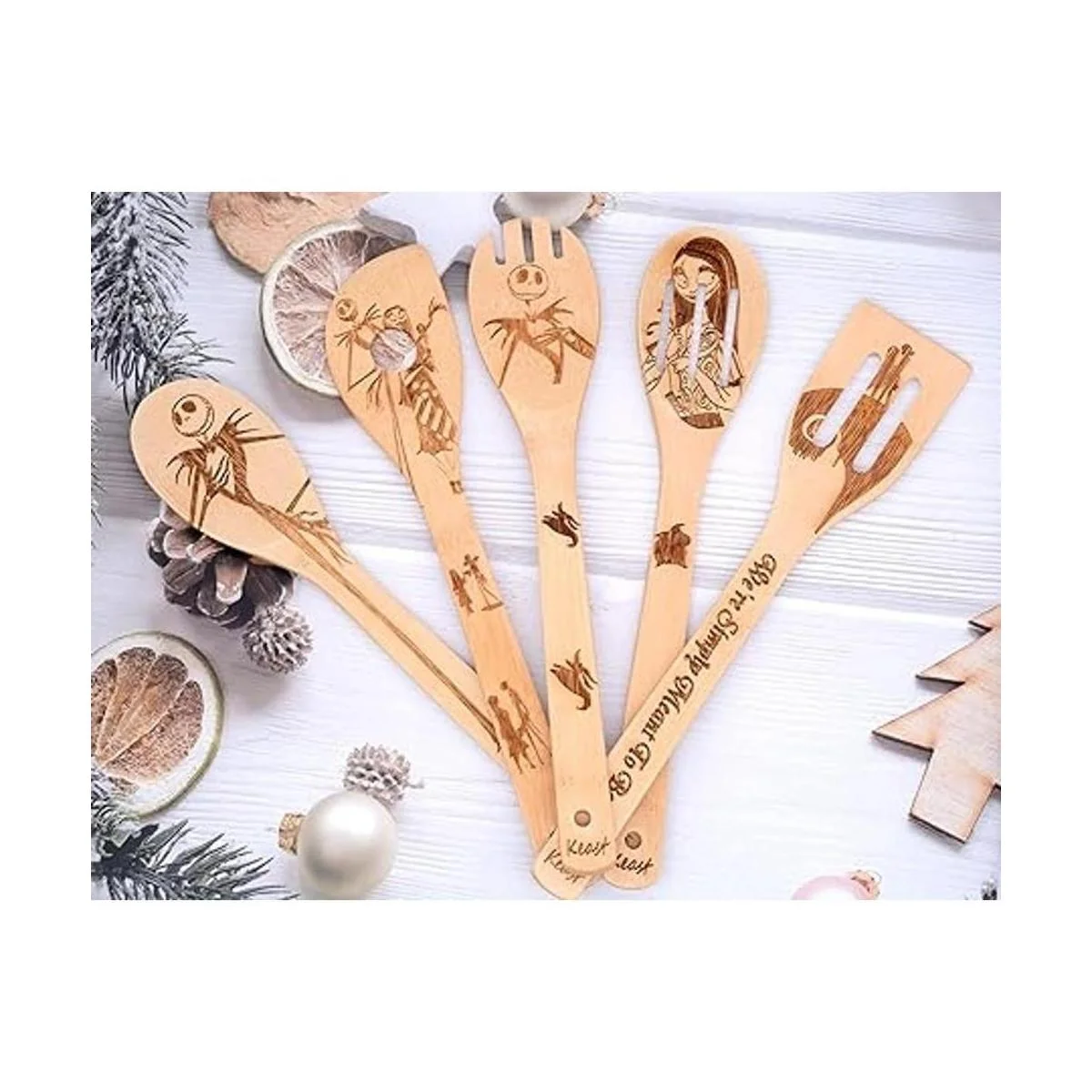El paquete incluye: juego de 5 y viene con caja de regalo, incluyendo 1 cuchara sólida, 1 cuchara ranurada, 1 espátula redondeada, 1 espátula ranurada y 1 cuchara de esquina, 11.8 pulgadas de largo y 2.36 pulgadas de ancho.